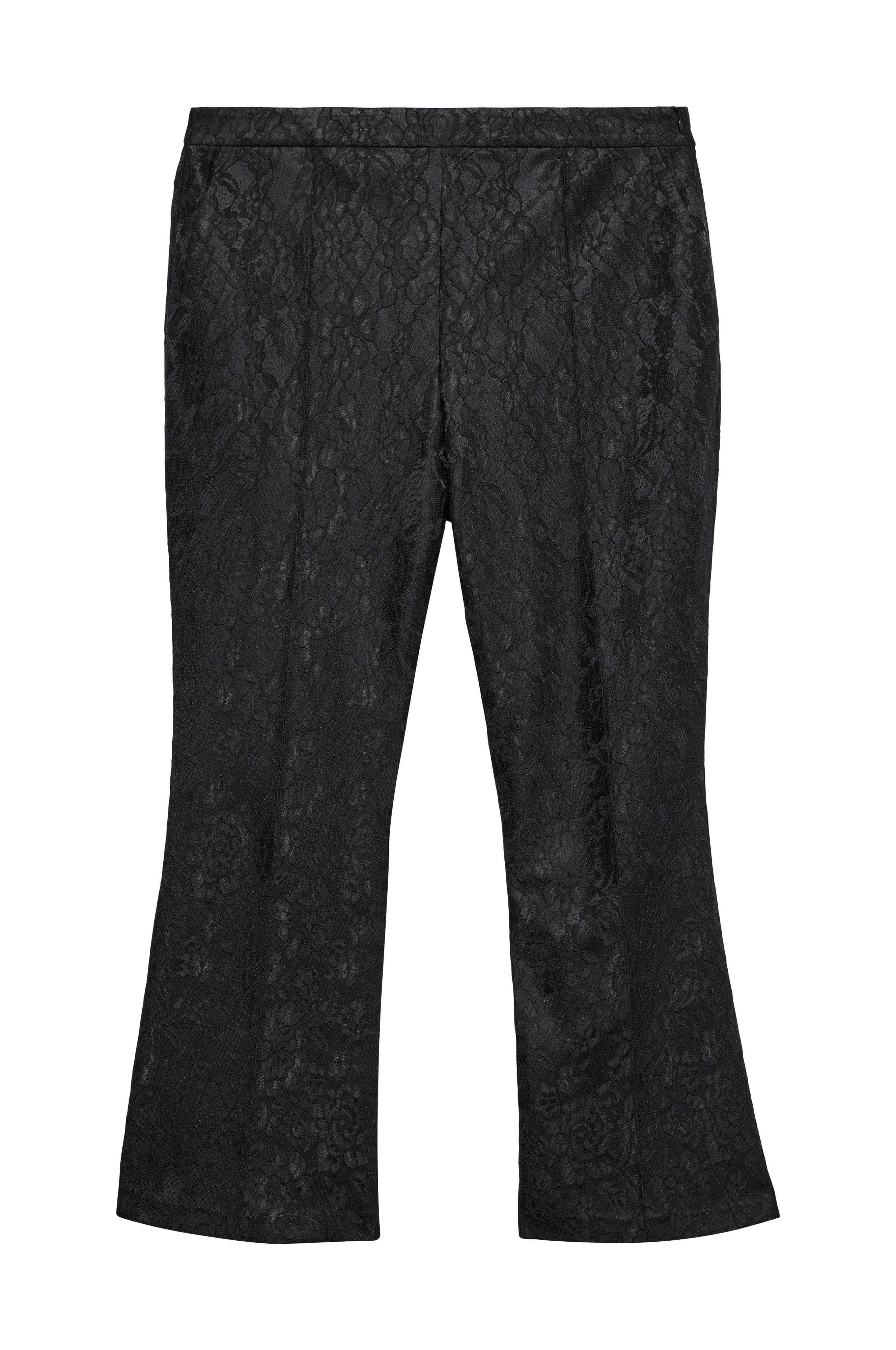 • Byxor i spets• Utsvängda ben• Resår bak i midjan• Dold dragkedja i ena sidan• Två framfickor• Beninnerlängd: 80 cm i storlek• Plusstorlekar