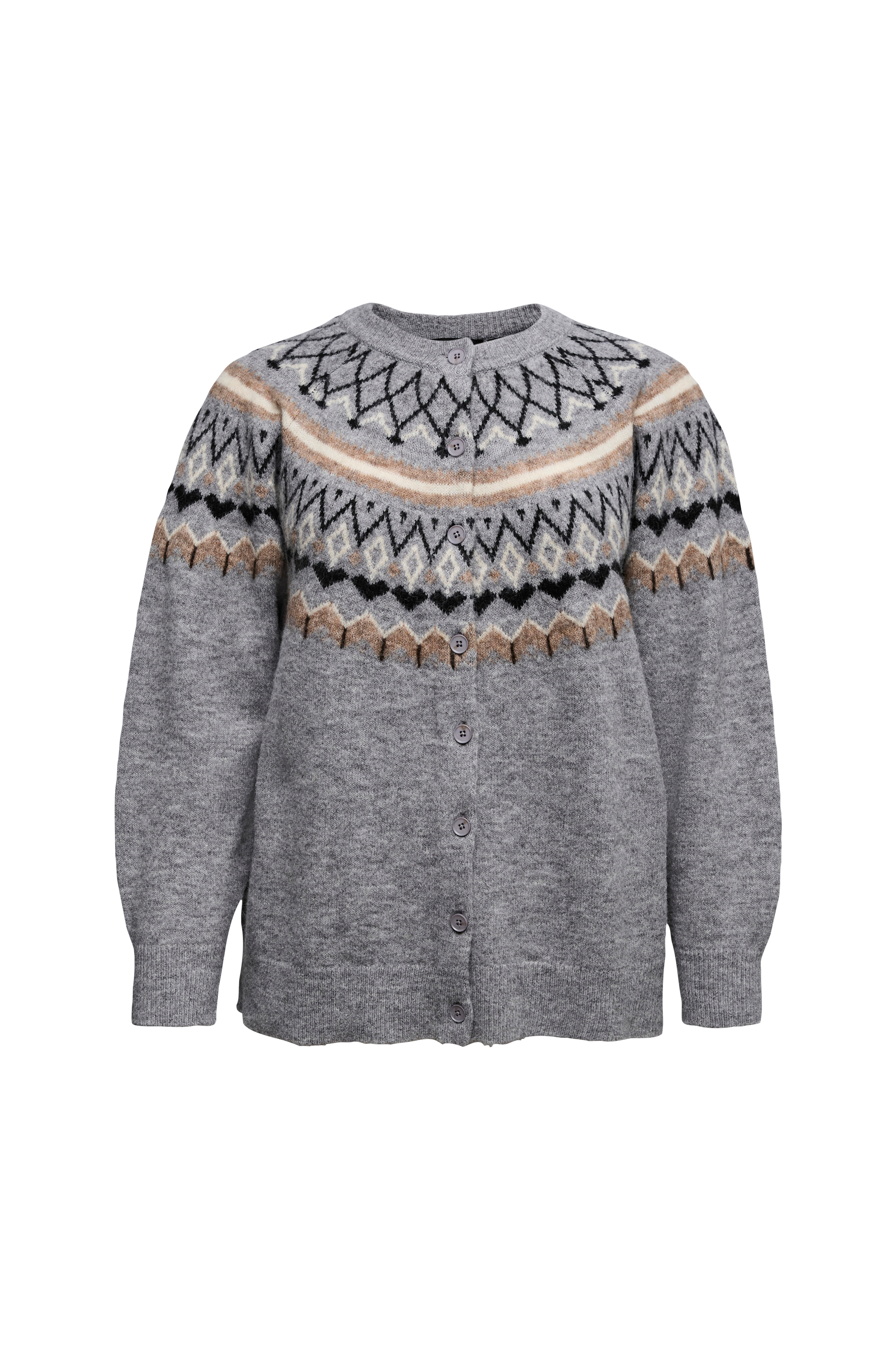 • Mjuk, stickad cardigan med mönsterstickning upptill• Rund, ribbad halsringning• Ribbstickning i ärmsluten och i nederkanten• Plusstorlekar