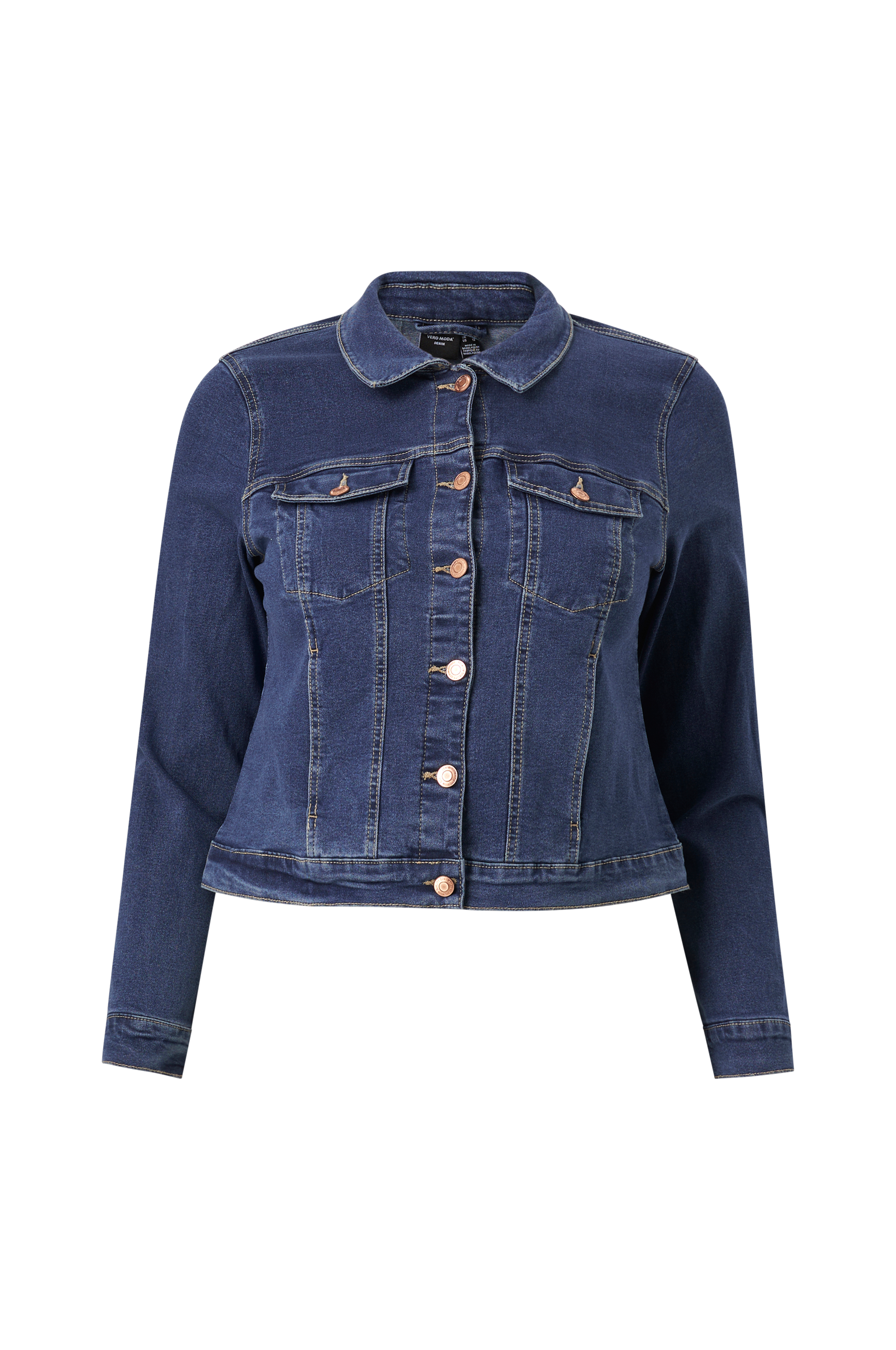 Så perfekt jeansjacka om man är lite rund. (tjock). Så bra omfång så att den går att knäppa i storlek 44 och stretch som gör den följsam. Fint demintyg. Två sidfickor fram. R…