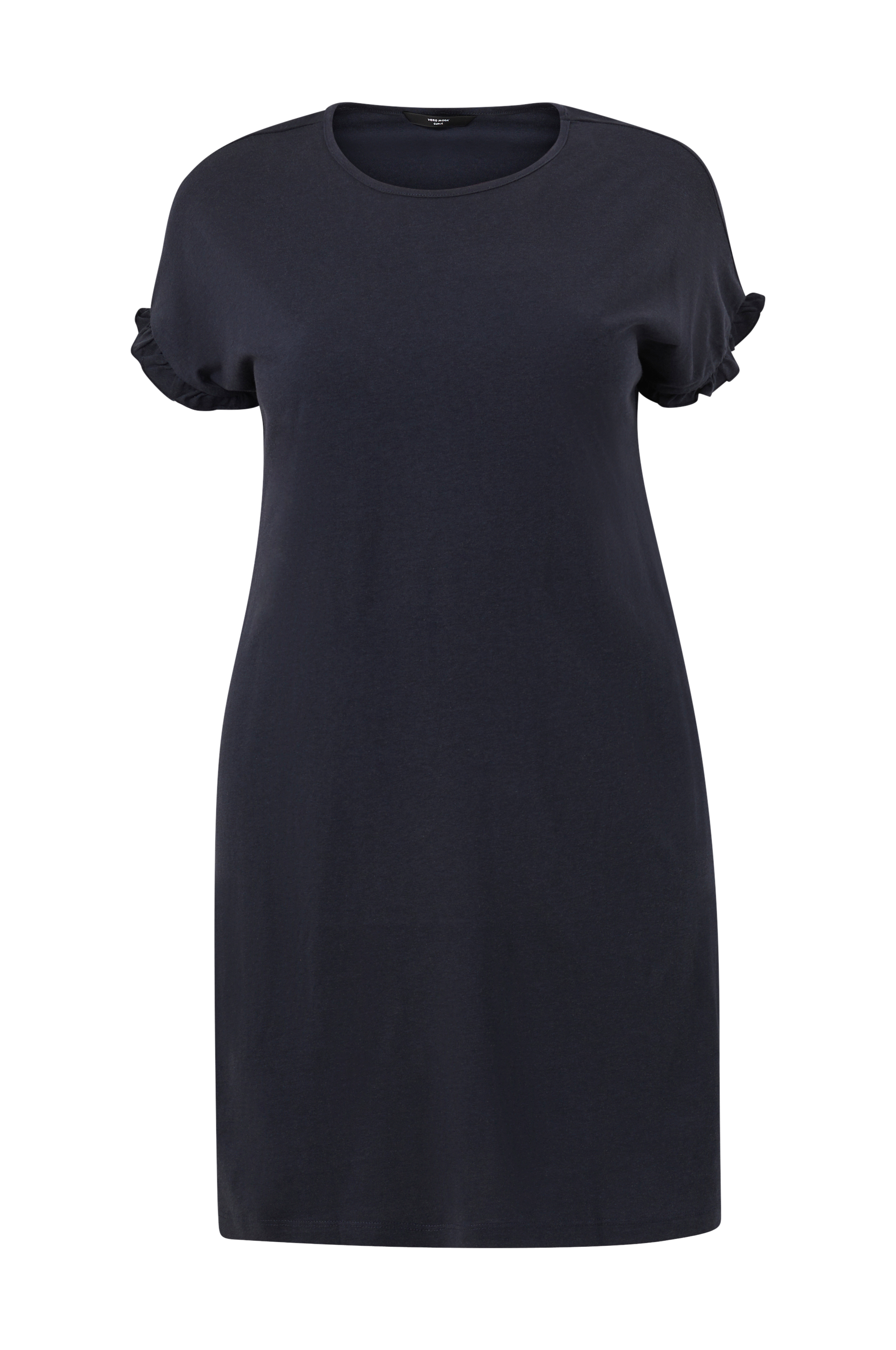 • T-shirtklänning• Korta ärmar med volang• Gjord av mjuk trikå• Plusstorlekar• Längd: 97 cm i storlek S
