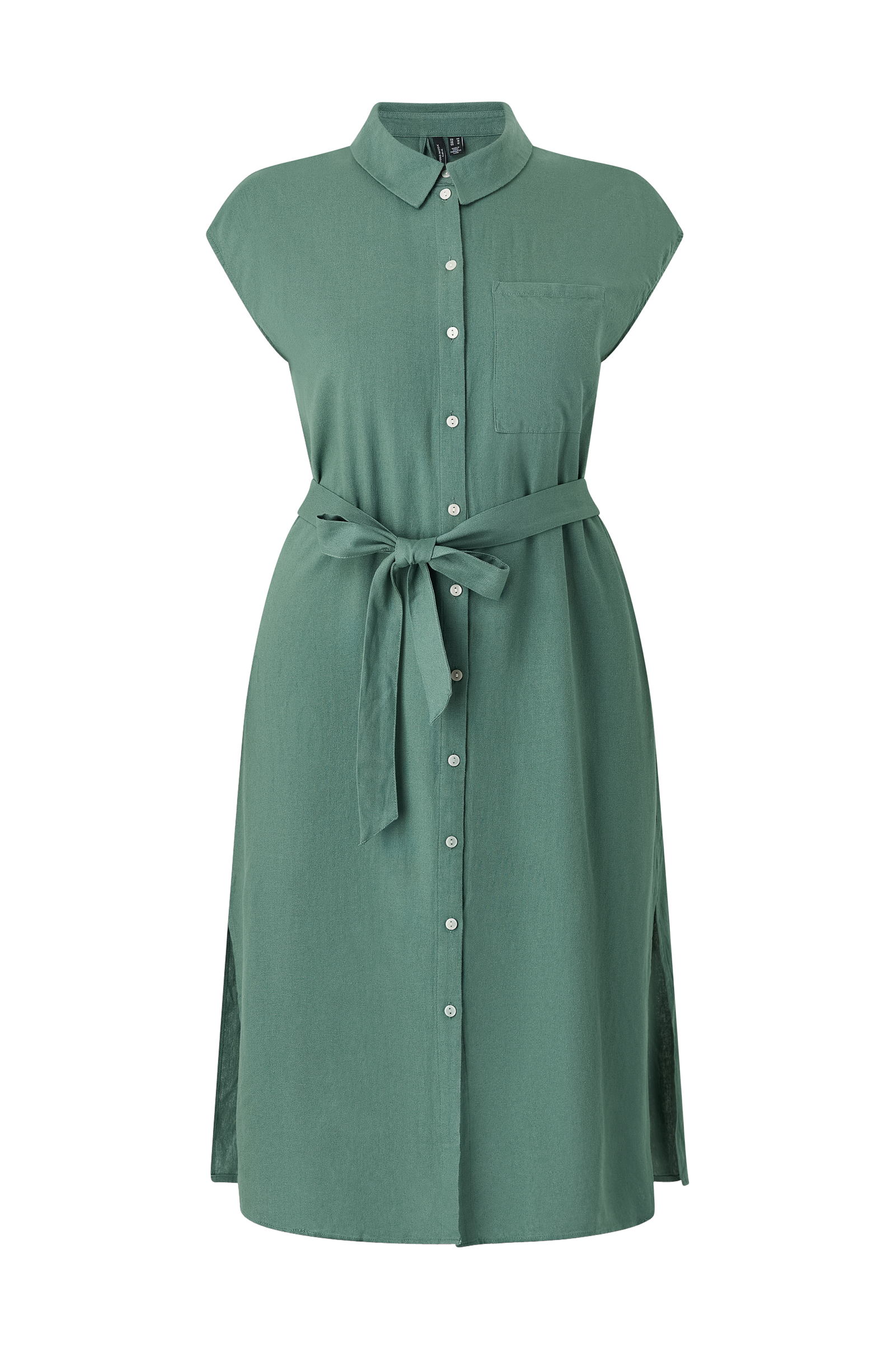 • Ärmlös skjortklänning i linnemix• Knappstängning ner längs framsidan• Bröstficka• Slits nedtill i sidorna• Plusstorlekar• Längd: 114 cm i storlek 44