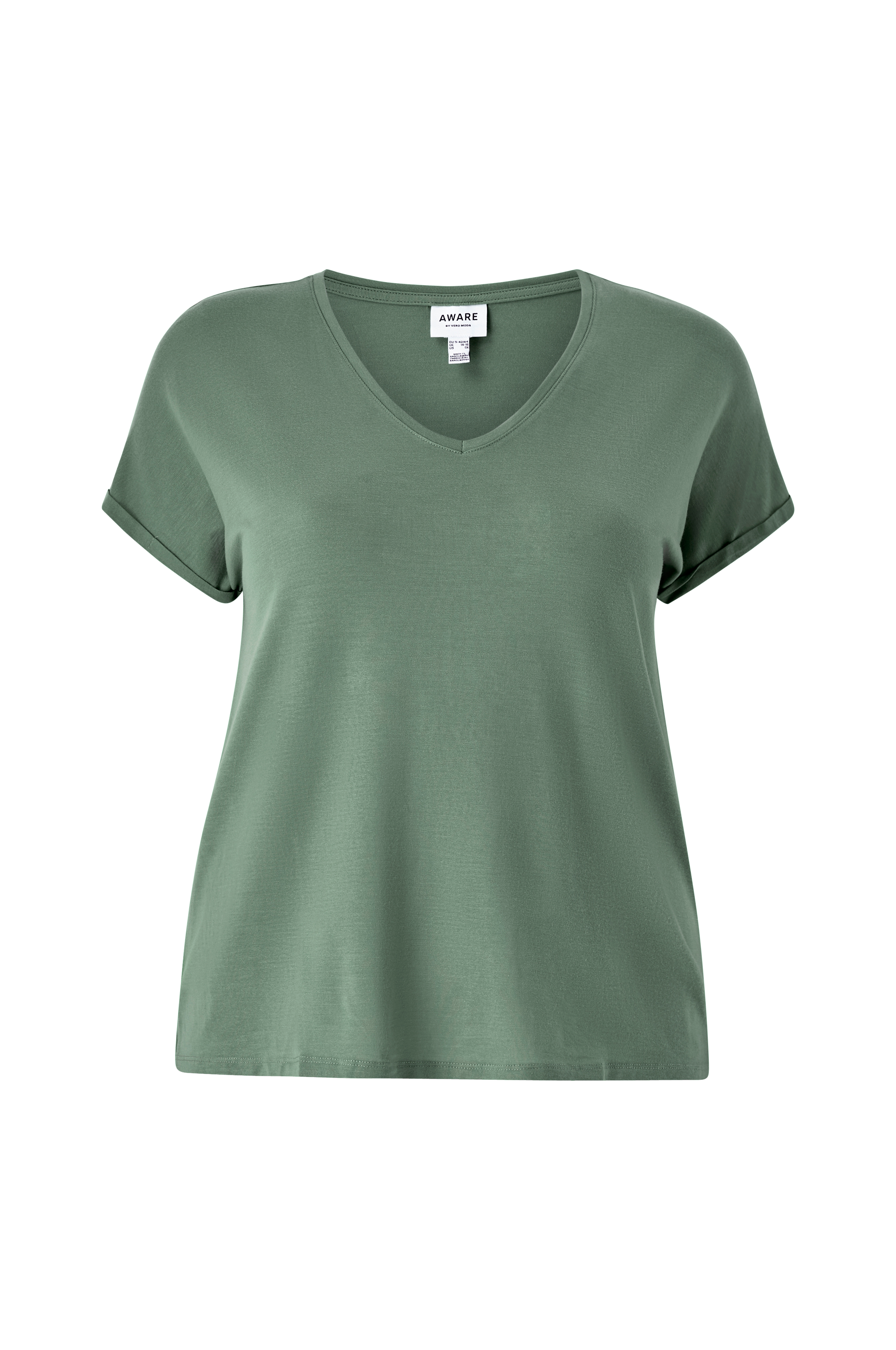 • V-ringning • Korta ärmar med uppvik • Gjord av mjuk trikå • Plusstorlekar • Produkten innehåller TENCEL™ som är ett förnyelsebart material och där tillverkningsprocessen sker i ett slutet system där alla resurser återvinns och återanvänds igen. TENCEL™ tillverkas av träslag från mer hållbara skogsplantager. Den har lägre miljöpåverkan och kräver mindre mängd vatten än bomull. • Produkten är certifierad enligt STANDARD 100 by OEKO-TEX®. Certifieringen garanterar att produkten är testad och fri från ämnen som kan vara skadliga för hälsan och miljön. Licensnummer & testinstitut: 13.HBD.31810 HOHENSTEIN HTTI
