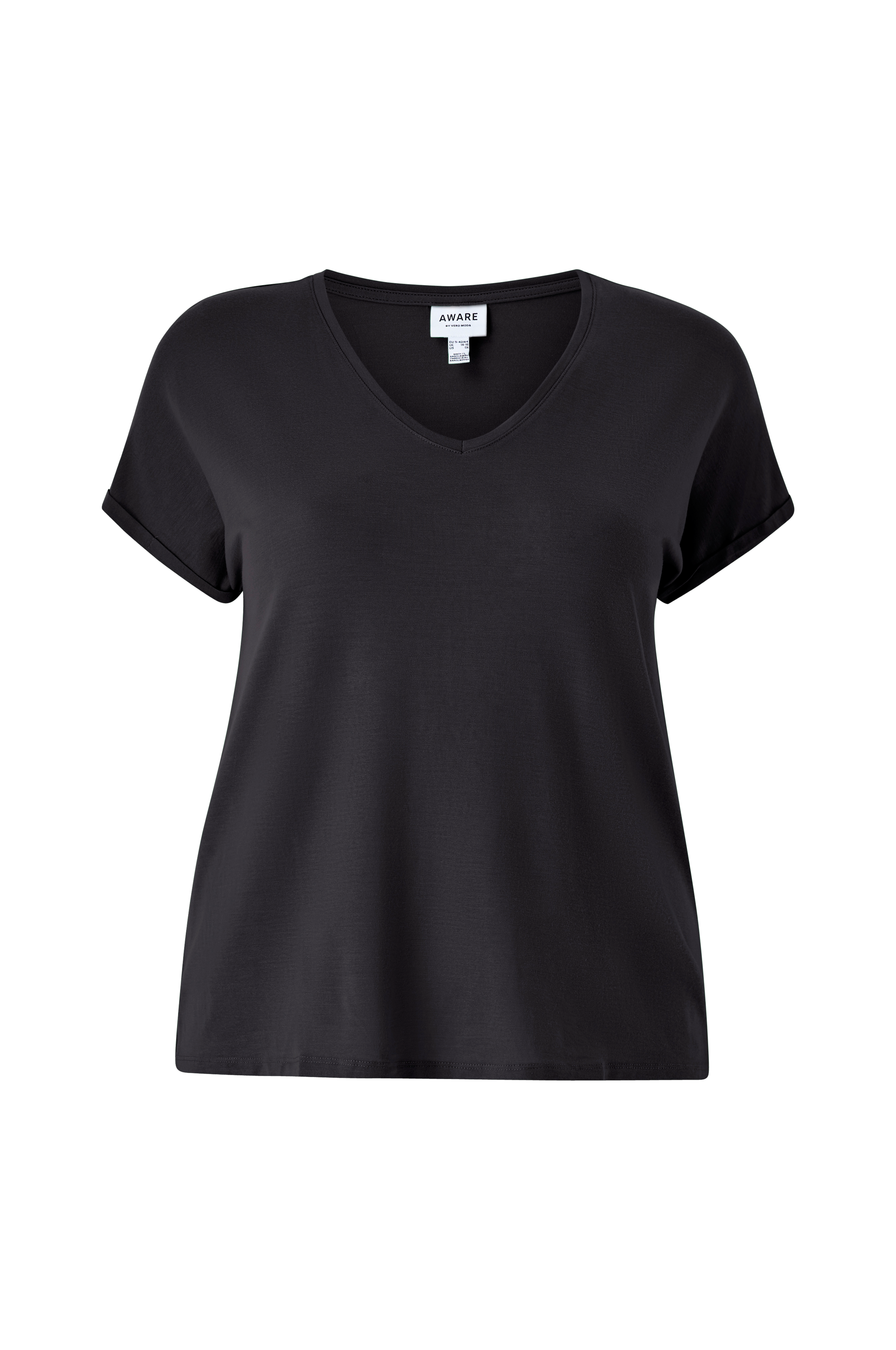 • V-ringning • Korta ärmar med uppvik • Gjord av mjuk trikå • Plusstorlekar • Produkten innehåller TENCEL™ som är ett förnyelsebart material och där tillverkningsprocessen sker i ett slutet system där alla resurser återvinns och återanvänds igen. TENCEL™ tillverkas av träslag från mer hållbara skogsplantager. Den har lägre miljöpåverkan och kräver mindre mängd vatten än bomull. • Produkten är certifierad enligt STANDARD 100 by OEKO-TEX®. Certifieringen garanterar att produkten är testad och fri från ämnen som kan vara skadliga för hälsan och miljön. Licensnummer & testinstitut: 13.HBD.31810 HOHENSTEIN HTTI