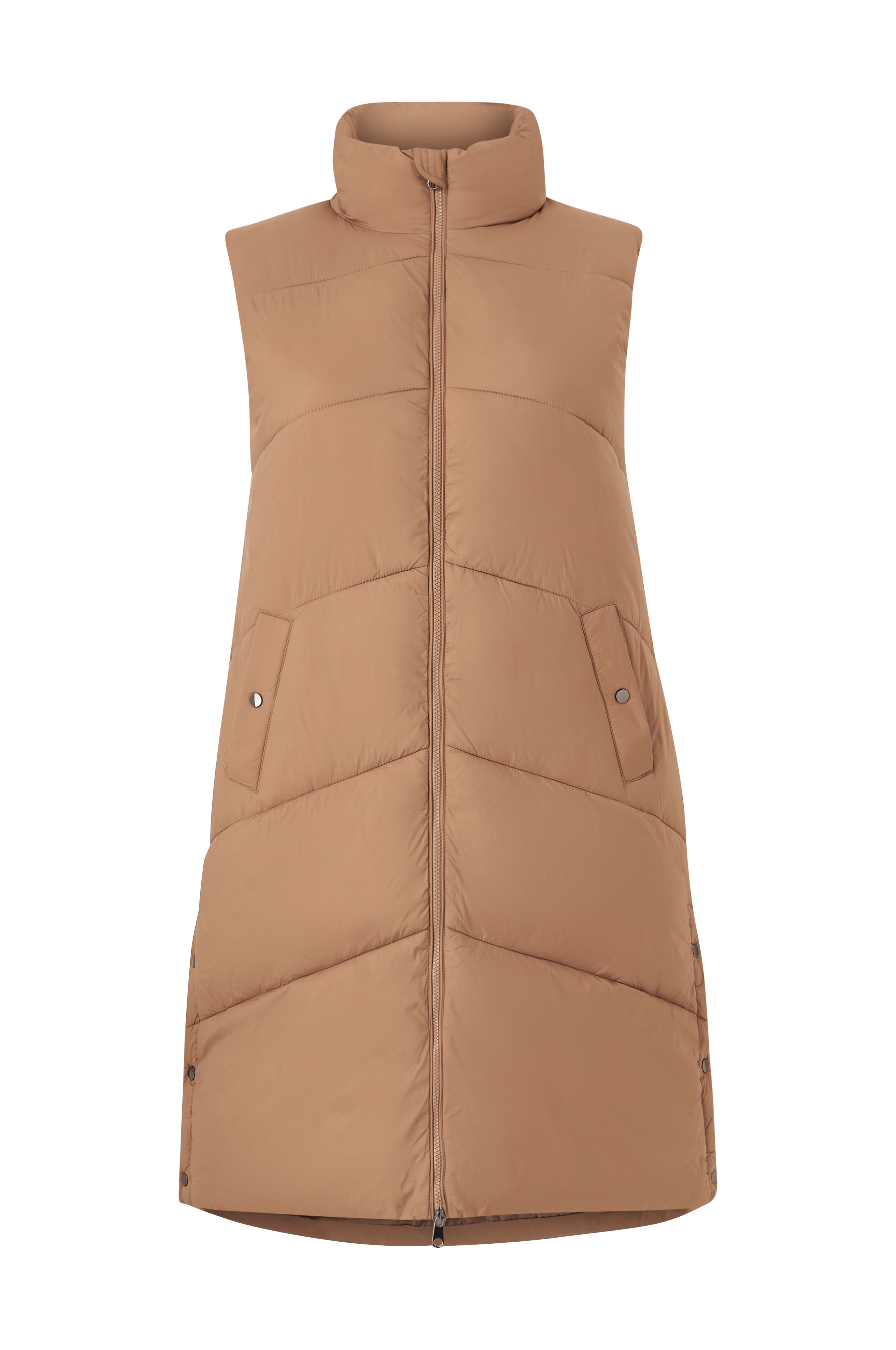 • Quiltad, vadderad väst• Hög krage• Tvåvägsdragkedja• Två fickor med tryckknapp• Slitsar med tryckknappar nedtill i sidorna• Längd: 100 cm i storlek 44