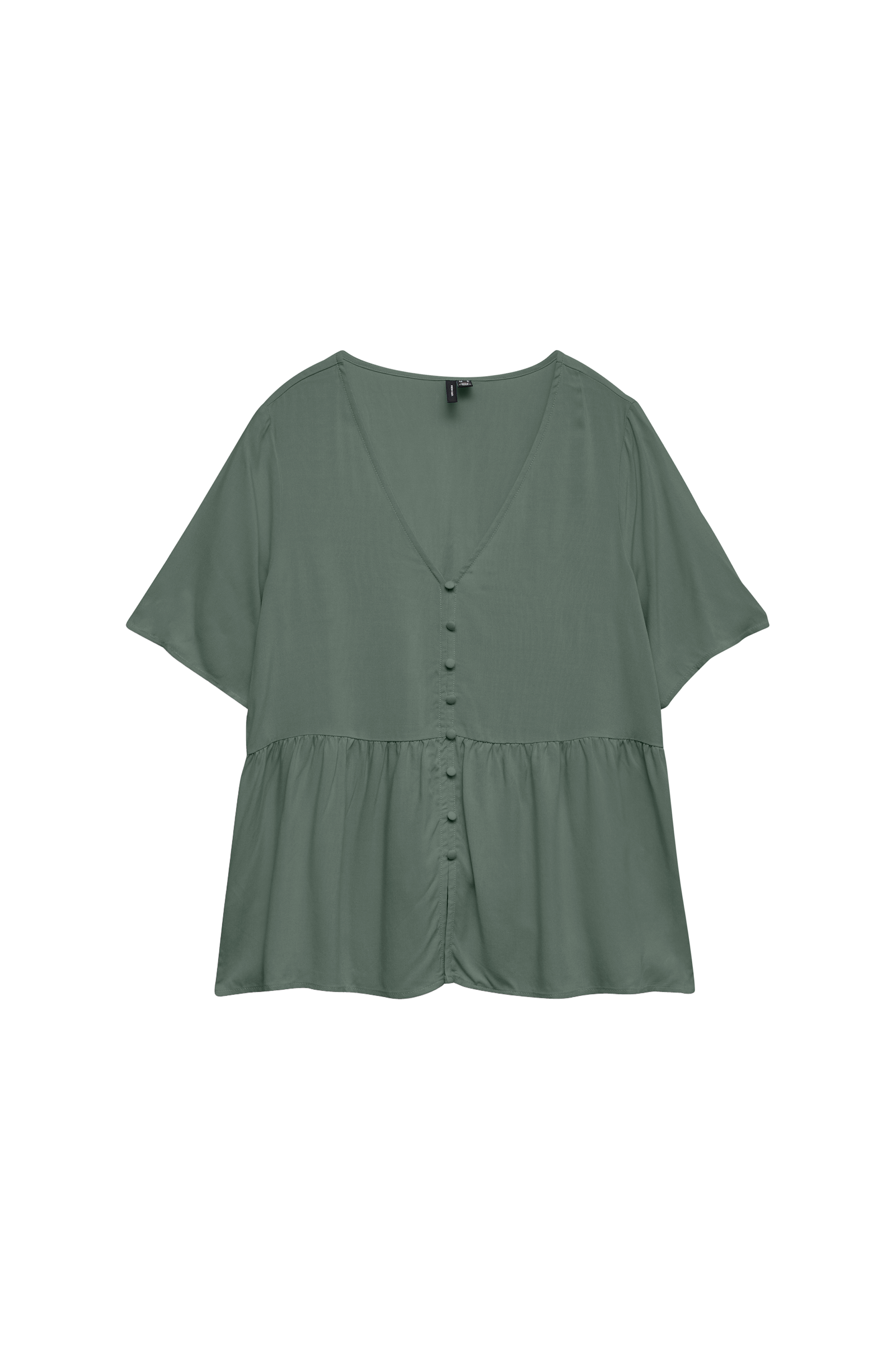 • Skir blus med korta ärmar• V-ringad hals• Dekorativa, klädda knappar fram• Rynkad avskärning i midjan