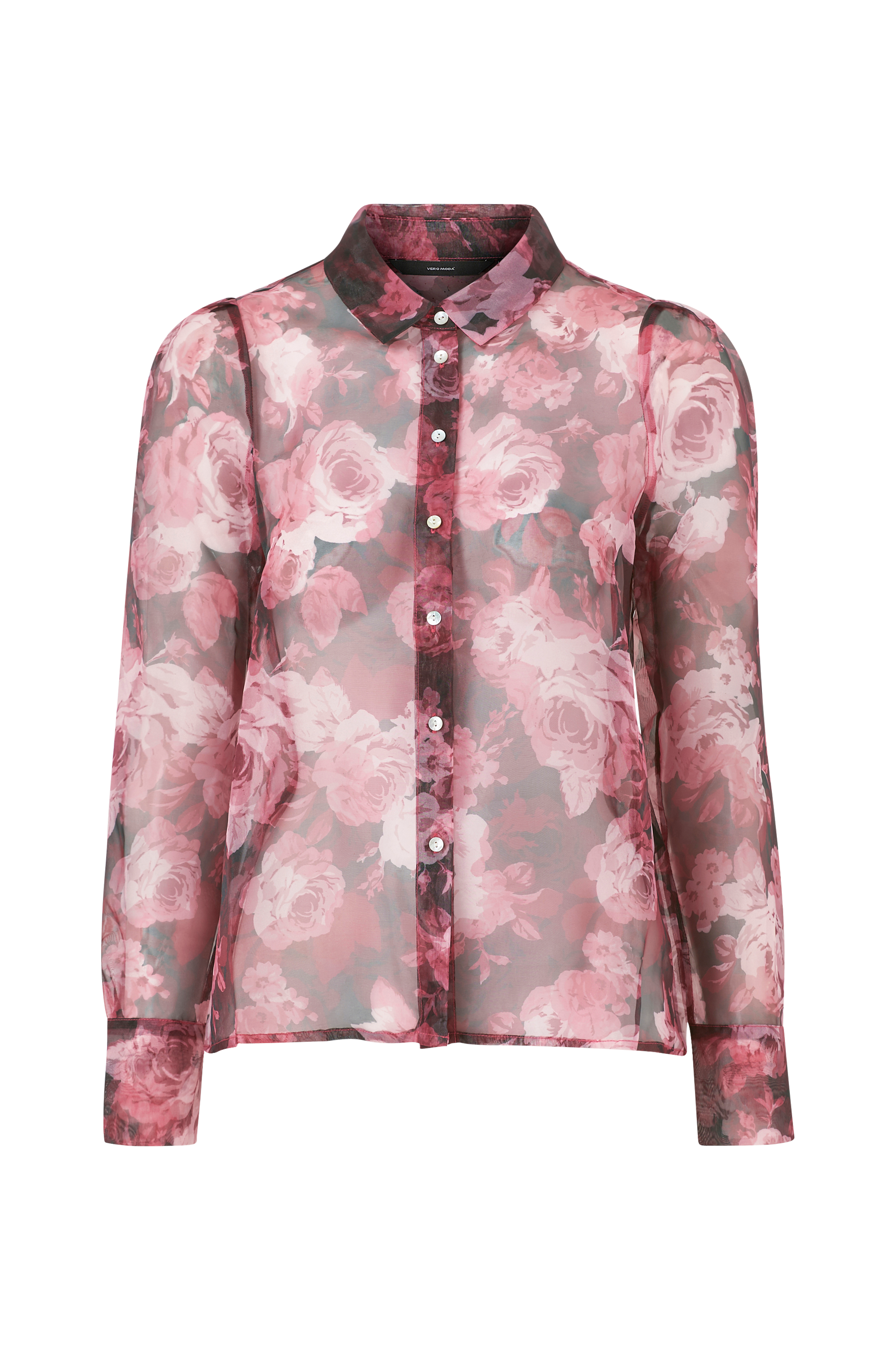 Blus vmEriki L/S Shirt från Vero Moda. Rak modell i mönstrad organza med lång puffärm som har rynk vid axeln och manschett i ärmslut. Liten skjortkrage och knäppning hela vägen fram.