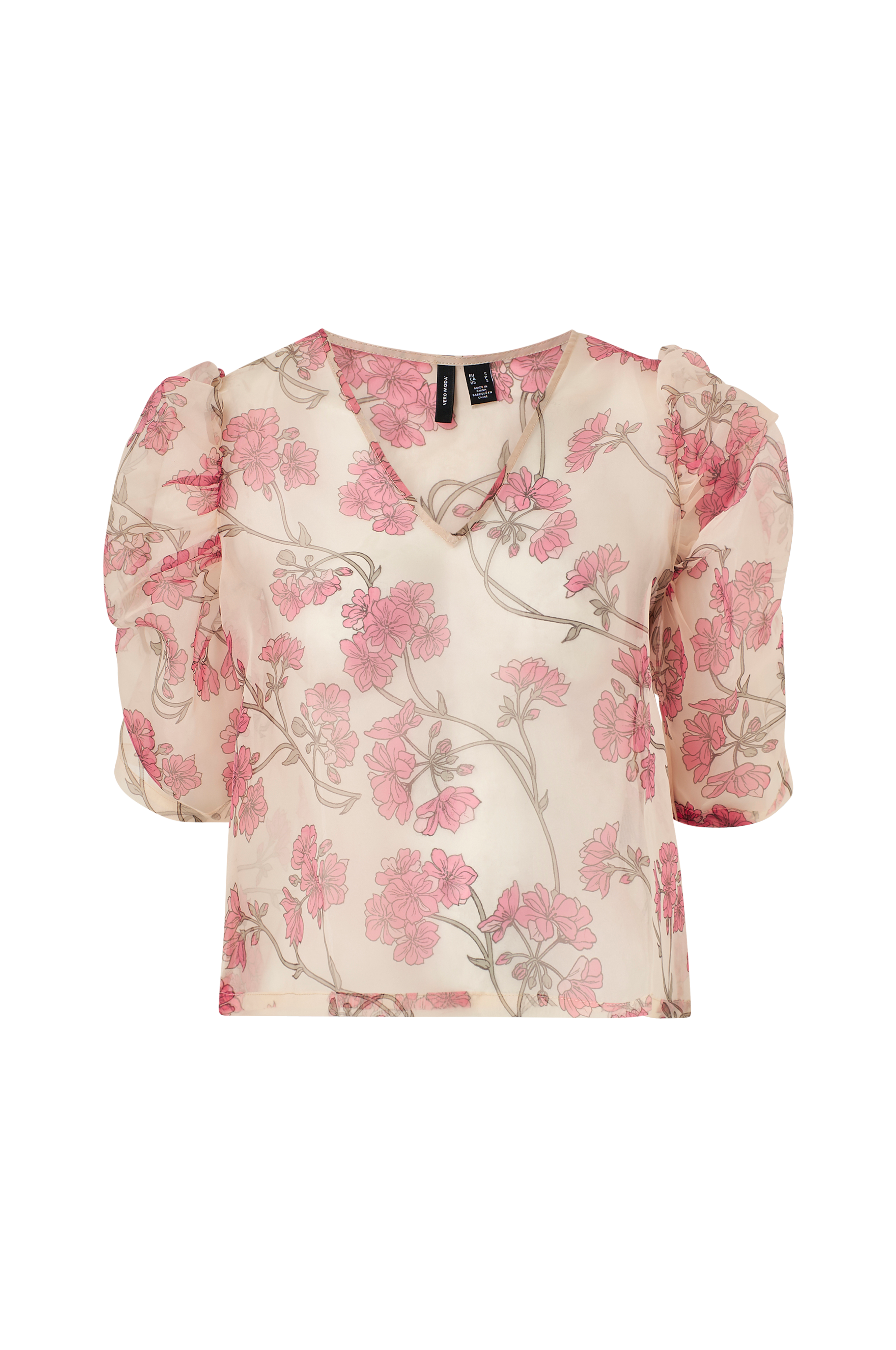 Blus vmInes S/S Flower Organza Top från Vero Moda i transparent organza med diskret lyster. Överdimensionerade puffärmar med rynkad resår längs ovansidan.