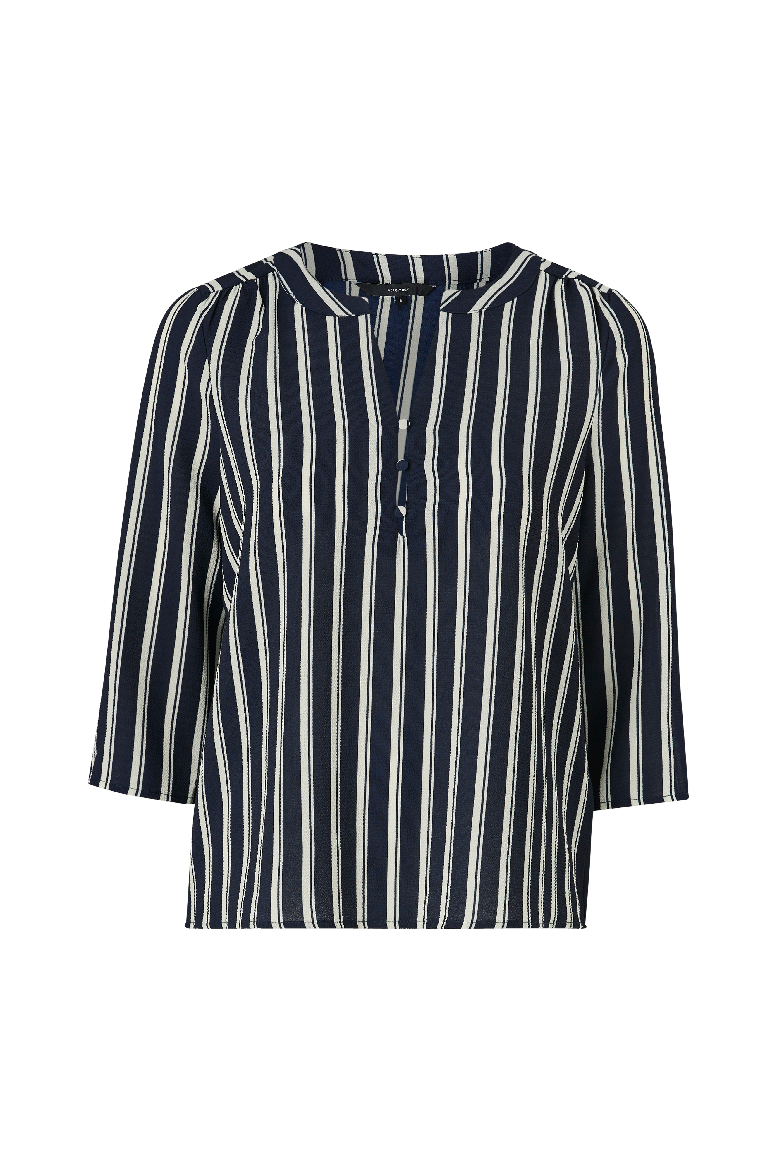 Blus vmSasha 3/4 Button Top från Vero Moda i kräppkvalitet med v-ringning och klädda knäppar upptill fram. 3/4-lång ärm och dekorativt rynk längs axelsömmen.