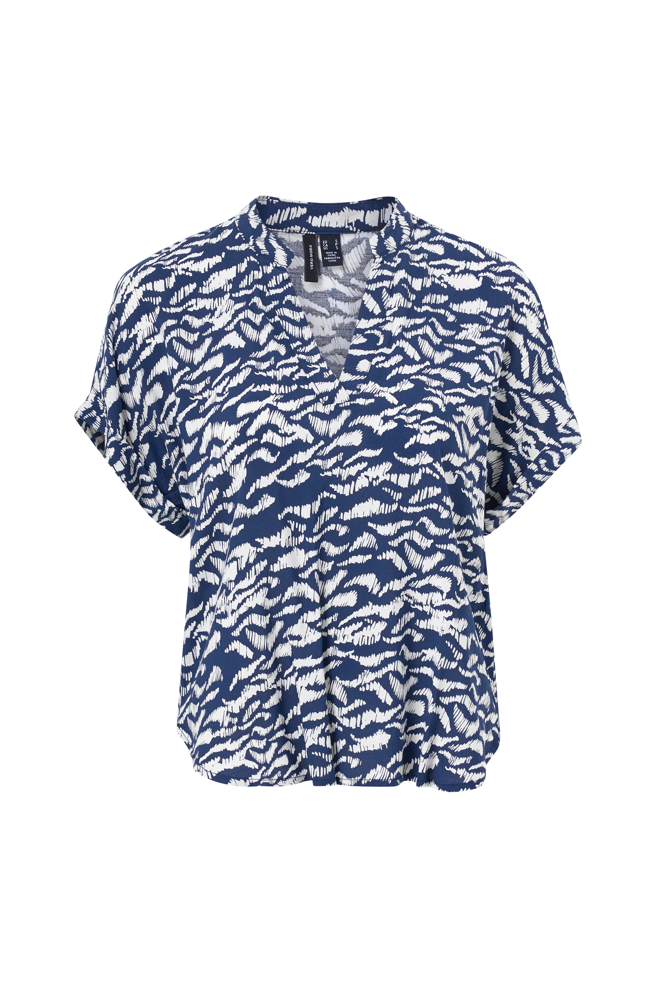 • Korta ärmar med uppsydda ärmslut• V-ringad hals• Tryckt mönster