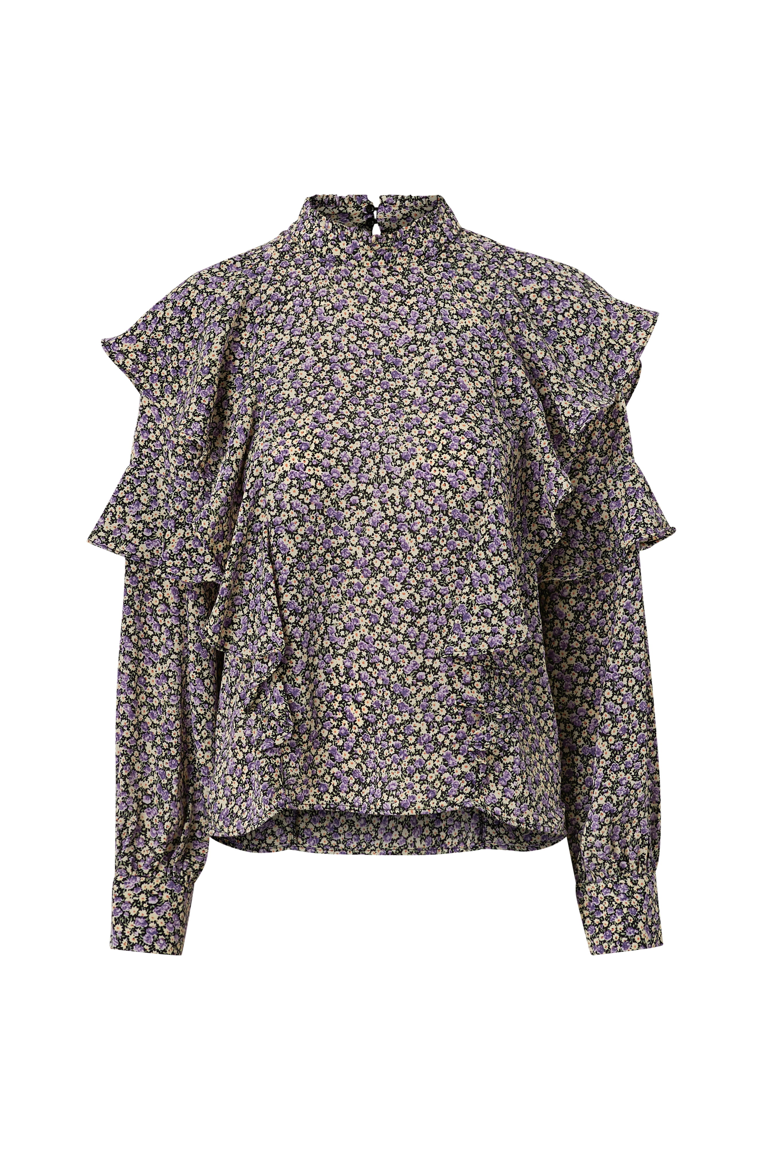 Blus vmVilda L/S Flower Blouse från Vero Moda i vävd, småblommig kvalitet. Breda volanger på axlarna som löper ner både fram och bak. Långa ballongärmar med volang upptill och manschett med knappar i ärmsluten. Ledig passform.