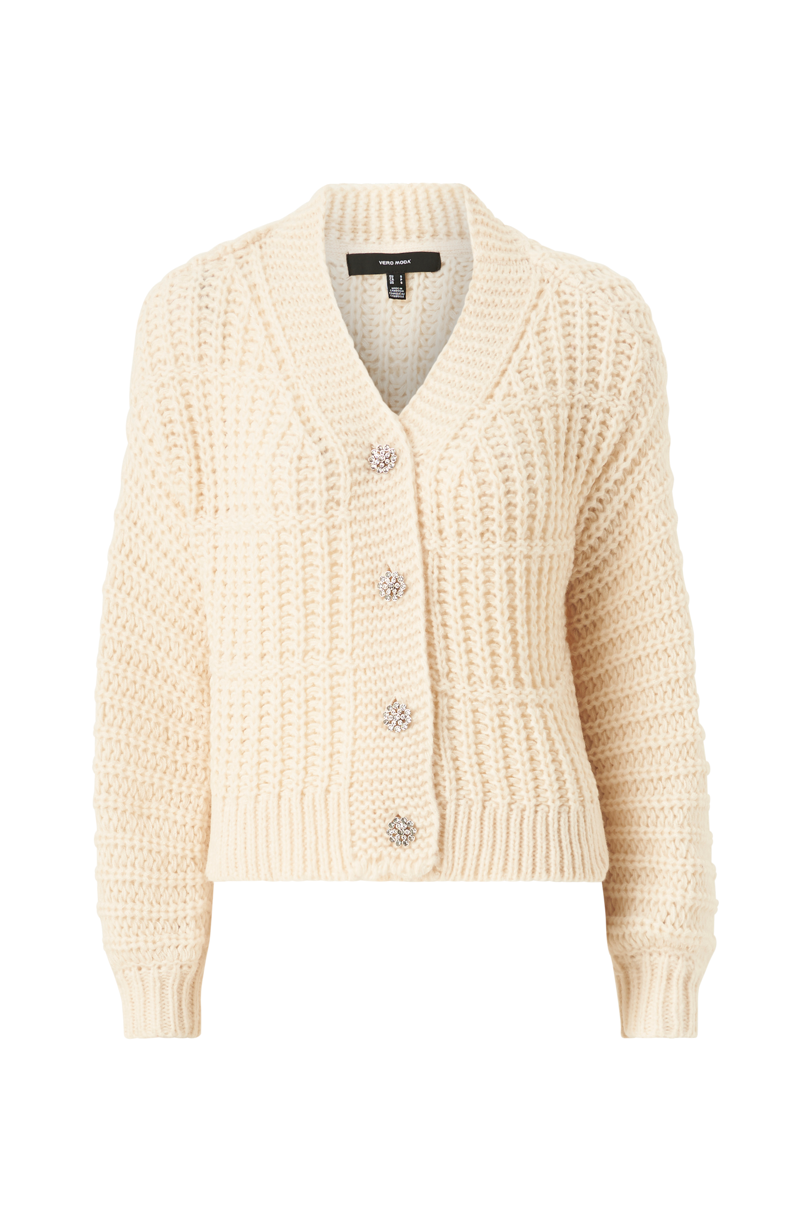 • Grovstickad cardigan• Kort, boxig passform• V-ringning• Knappar med strass