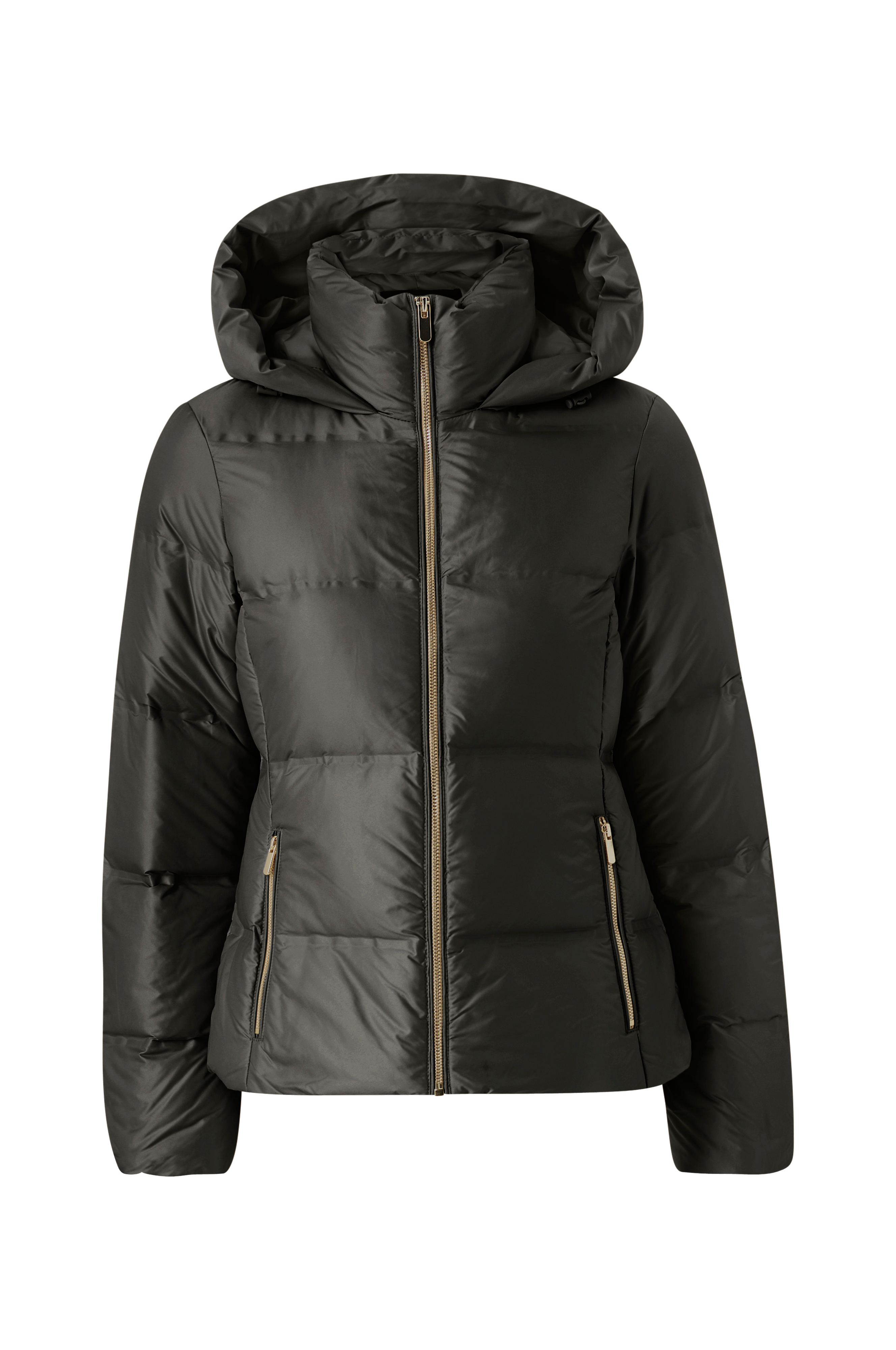 • Kort jacka med fyllning i dun- och fjädermix• Fast huva med dragsko• Dragkedja• Två fickor med dragkedja• Resår i ärmsluten• Längd: 58 cm i storlek S