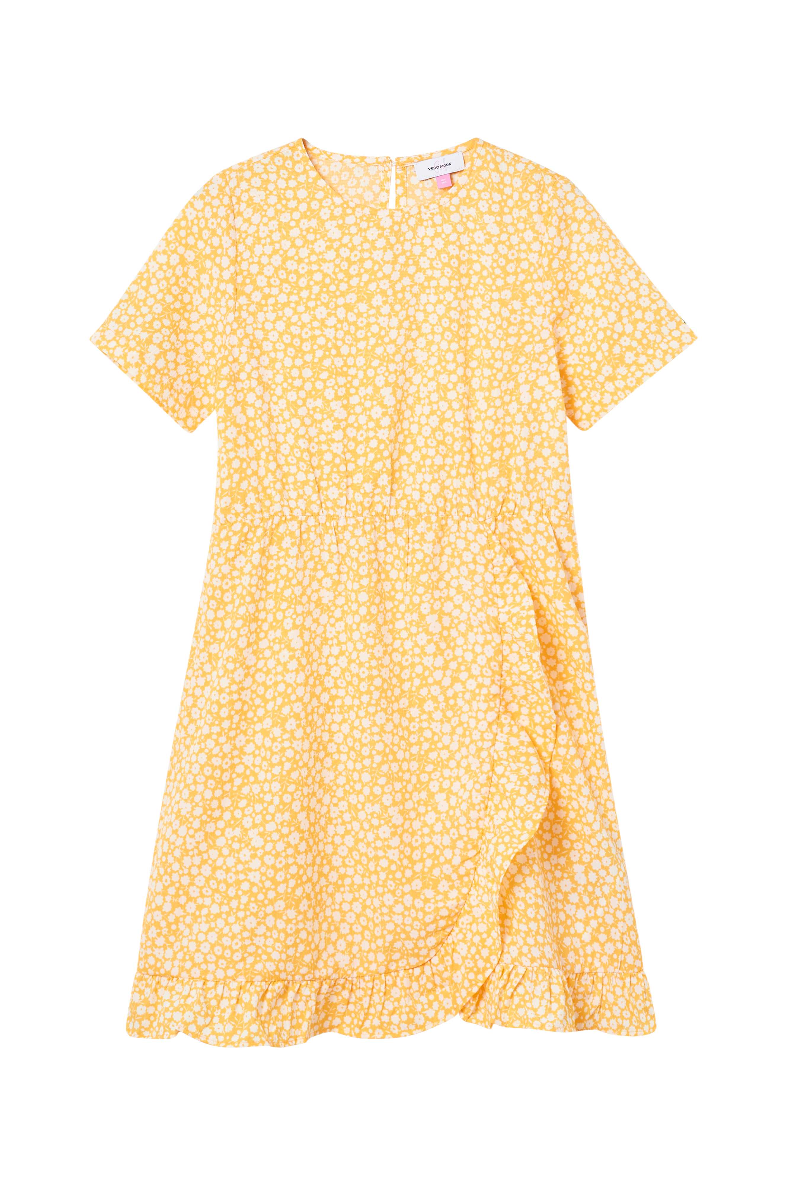 • Korta ärmar• Elastisk midja• Sprund med knapp i nacken• Volang på kjolen