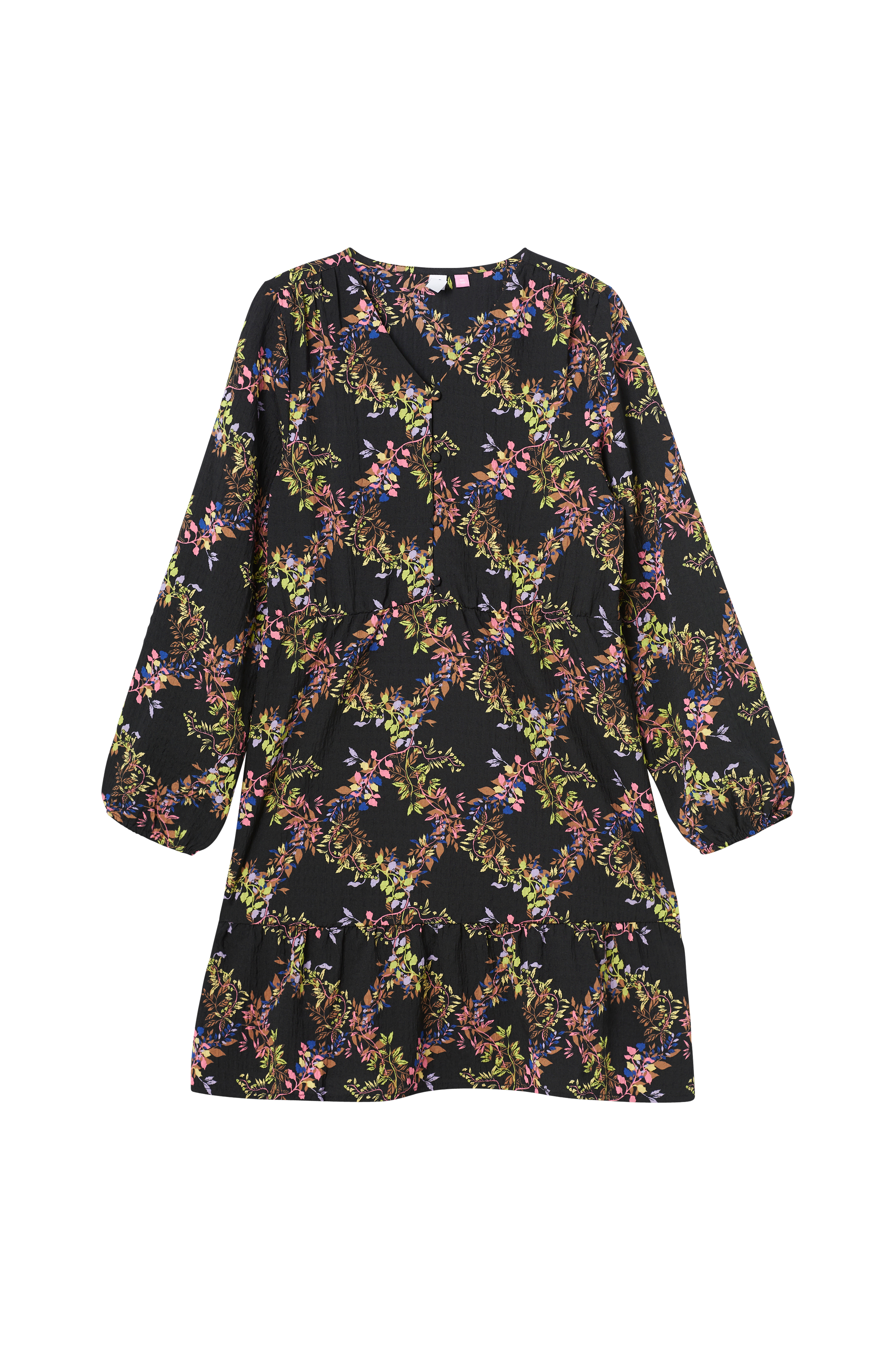 • V-ringning• Elastisk midja• Långa ärmar• Volang nedtill