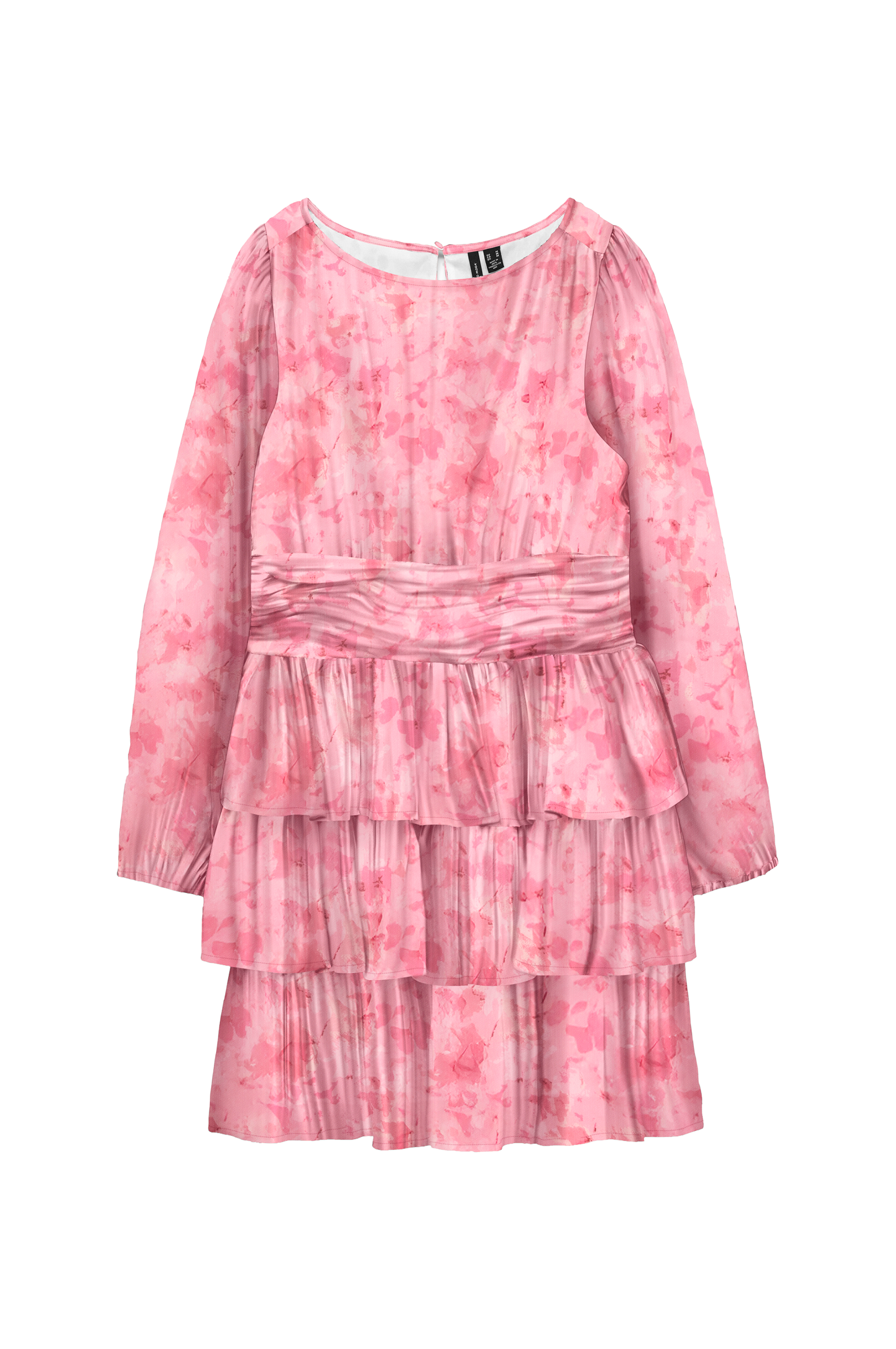 • Klänning i chiffong• Rund halsringning• Sprund med knapp i nacken• Långa puffärmar• Smock bak i midjan• Volanger nedtill• Textilfoder• Längd: 91 cm i storlek S