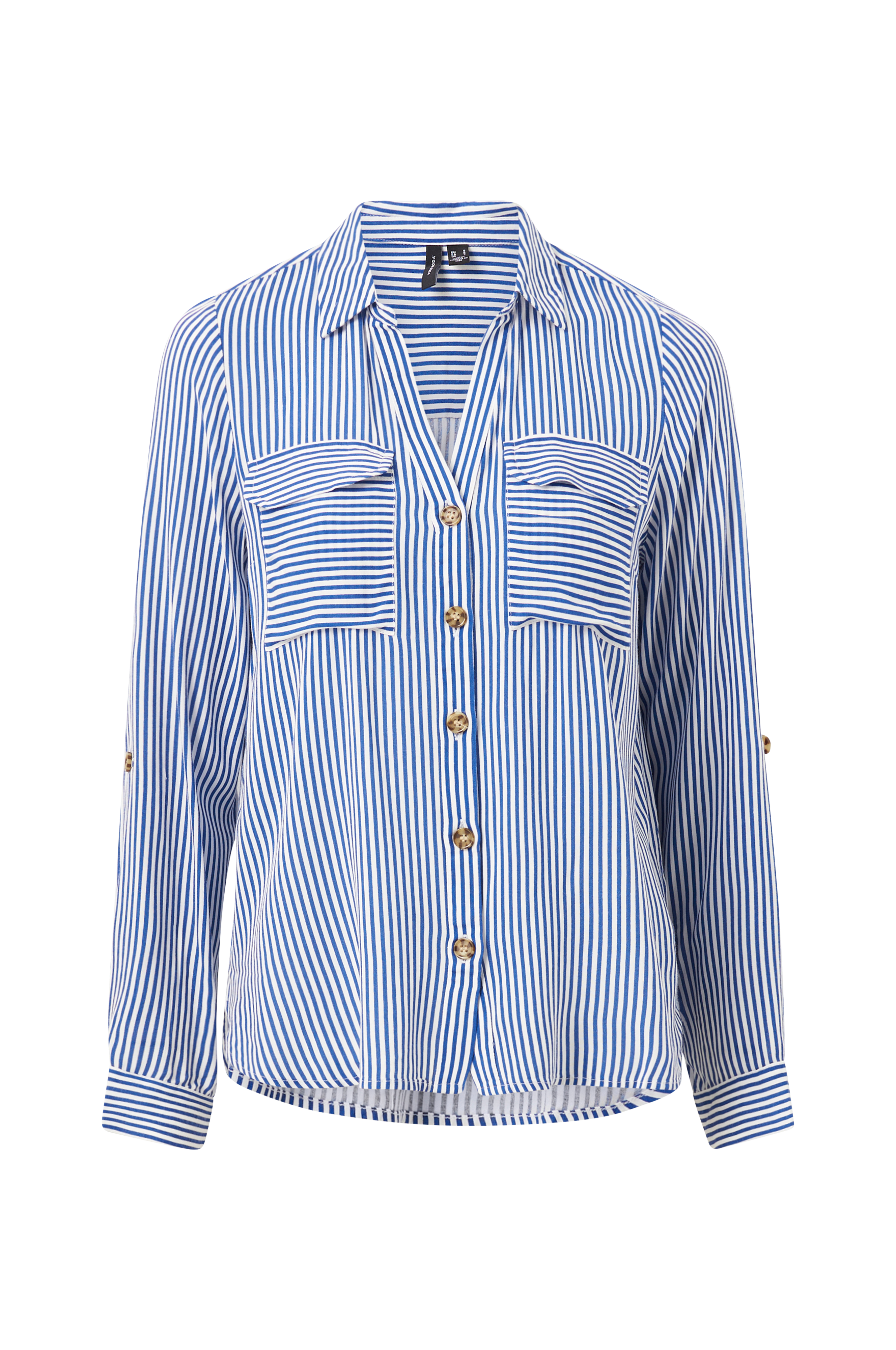 • Rak modell• Liten krage• V-ringning• Bröstfickor med lock• Lång ärm med invändig tamp• Rundad nederkant med korta sprund i sidorna