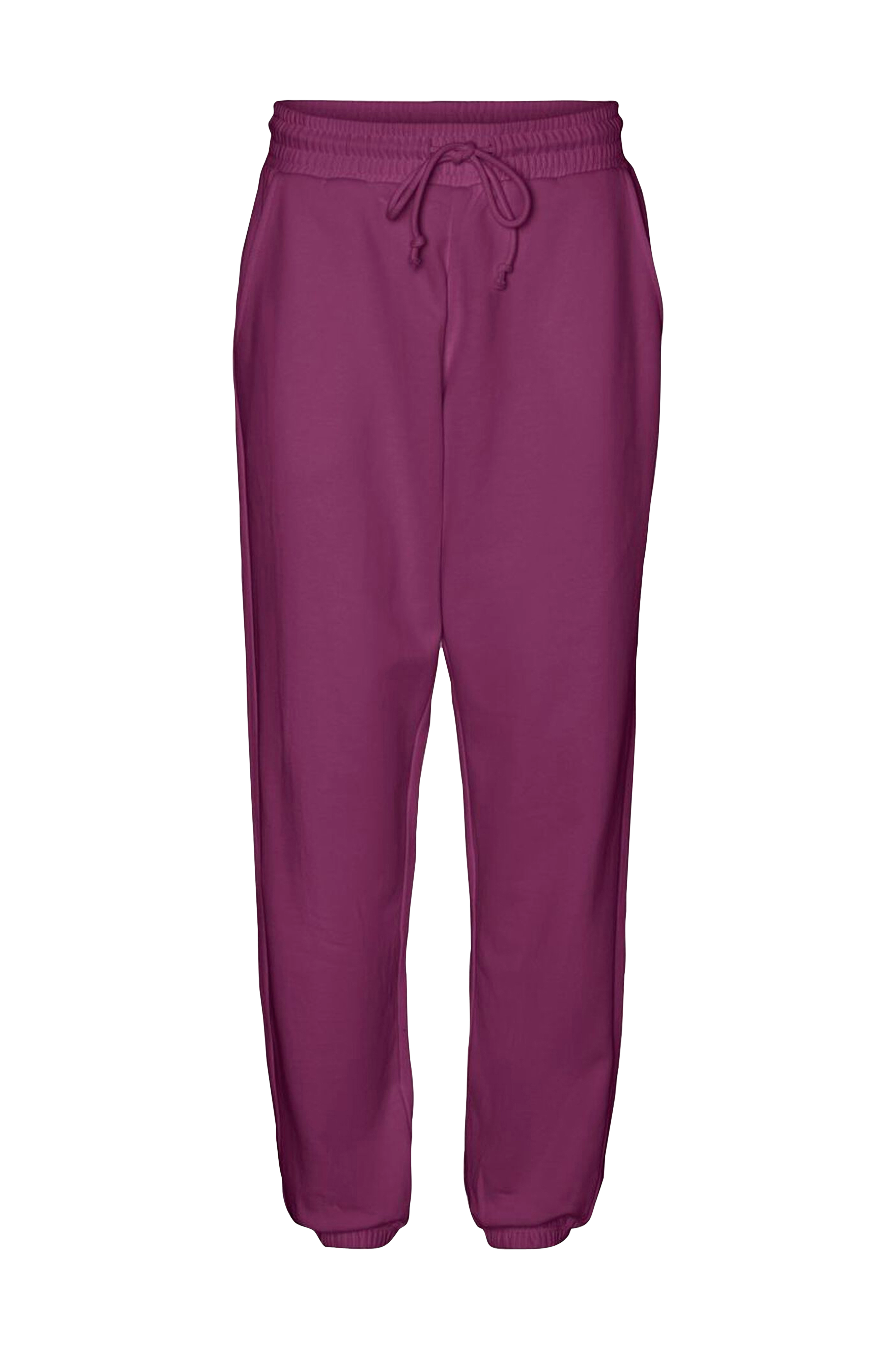 Mjukisbyxor i ekobomull med mjuk, borstad insida. Ledig modell med fickor i sidorna, elastisk midja med dragsko och elastiska benslut.