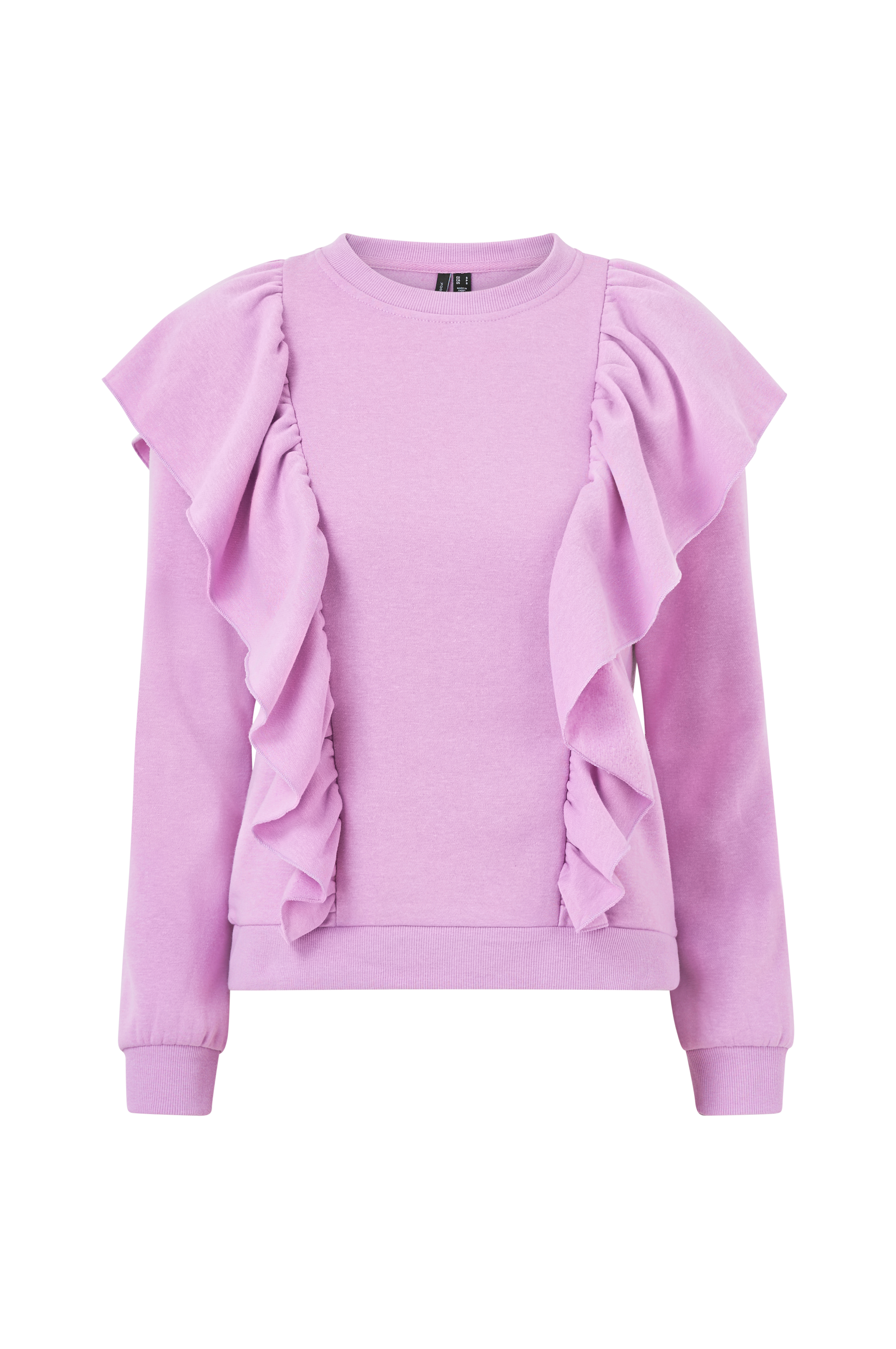 Sweatshirt vmMabe L/S Frill Sweat från Vero Moda. Rak modell med breda, påsydda volanger framifrån och bak över axeln. Rund hals med ribbstickad kant samt ribbstickad mudd i nederkant och ärmslut.