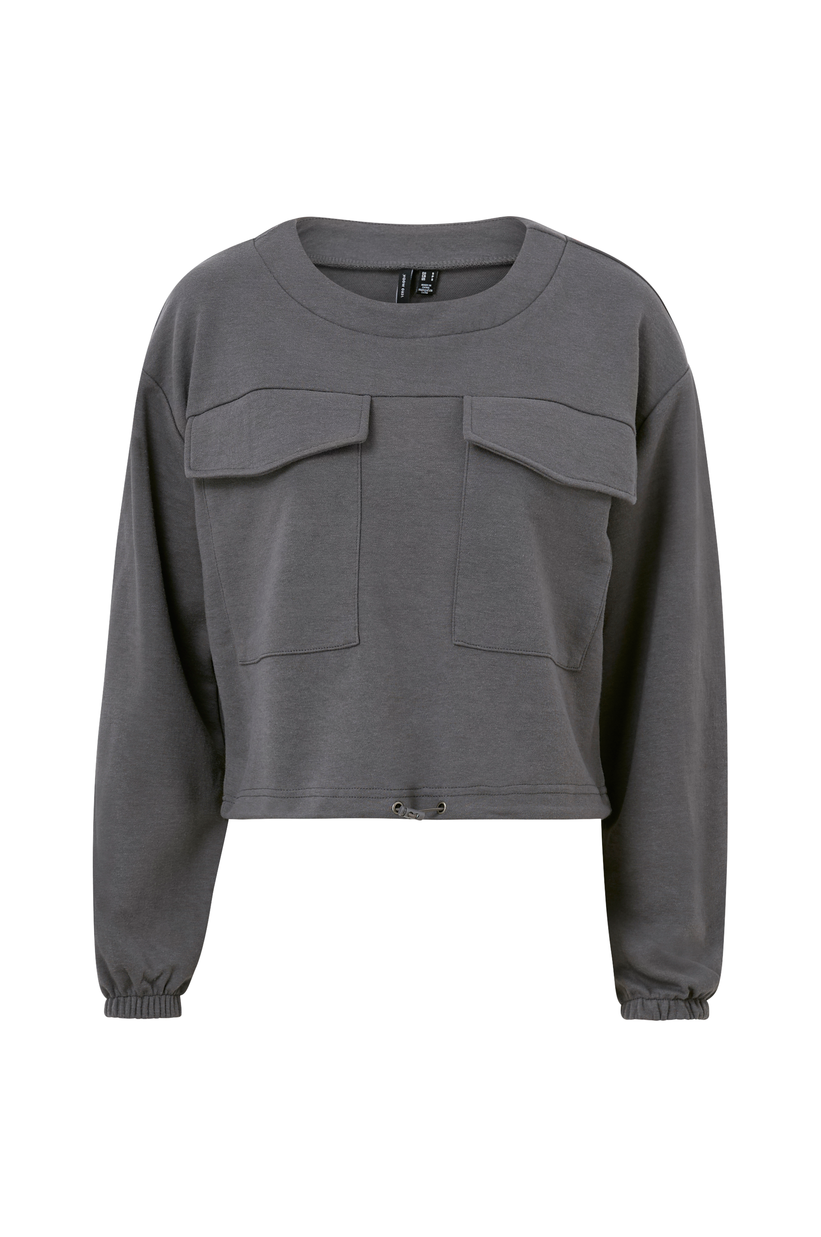 Sweatshirt vmZelda L/S Pocket från Vero Moda. Rak oversizemodell med rund hals som har bred fåll och infälld dragsko med stopper i nederkanten. Avskärning fram på bröstet och två stora fickor med lock samt infälld resår i ärmslut.