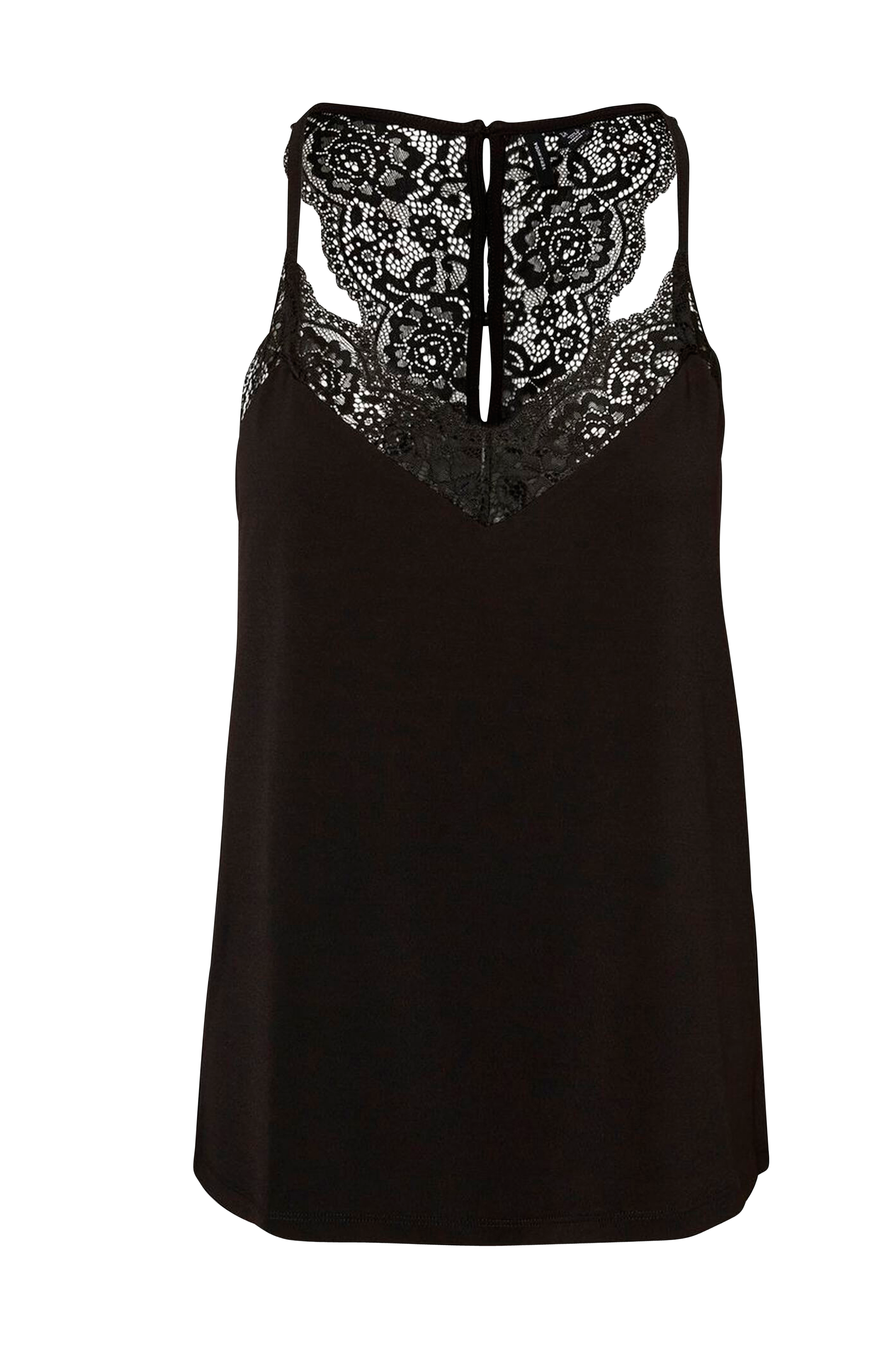 Topp vmAna S/L Lace Top från Vero Moda i trikå med spets längs halsringningen fram och i ryggen. V-ringning fram och t-rygg med klädda knappar.