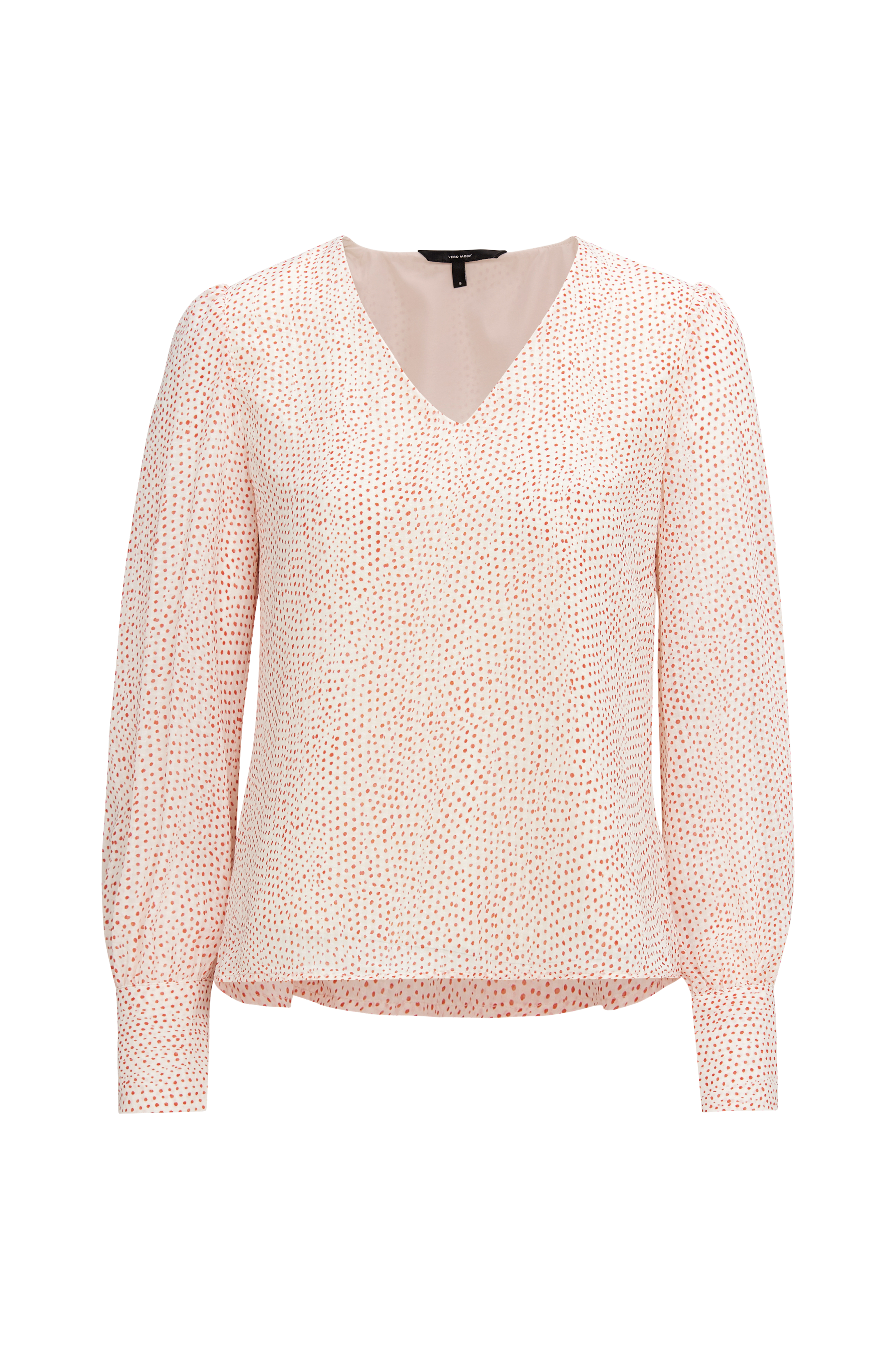 Topp vmDotty LS Top från Vero Moda. Rak modell med v-ringad hals och lång ärm med puff vid axeln och bred manschett i ärmslut. Vävd chiffong med bäckeböljaeffekt och vävt foder.