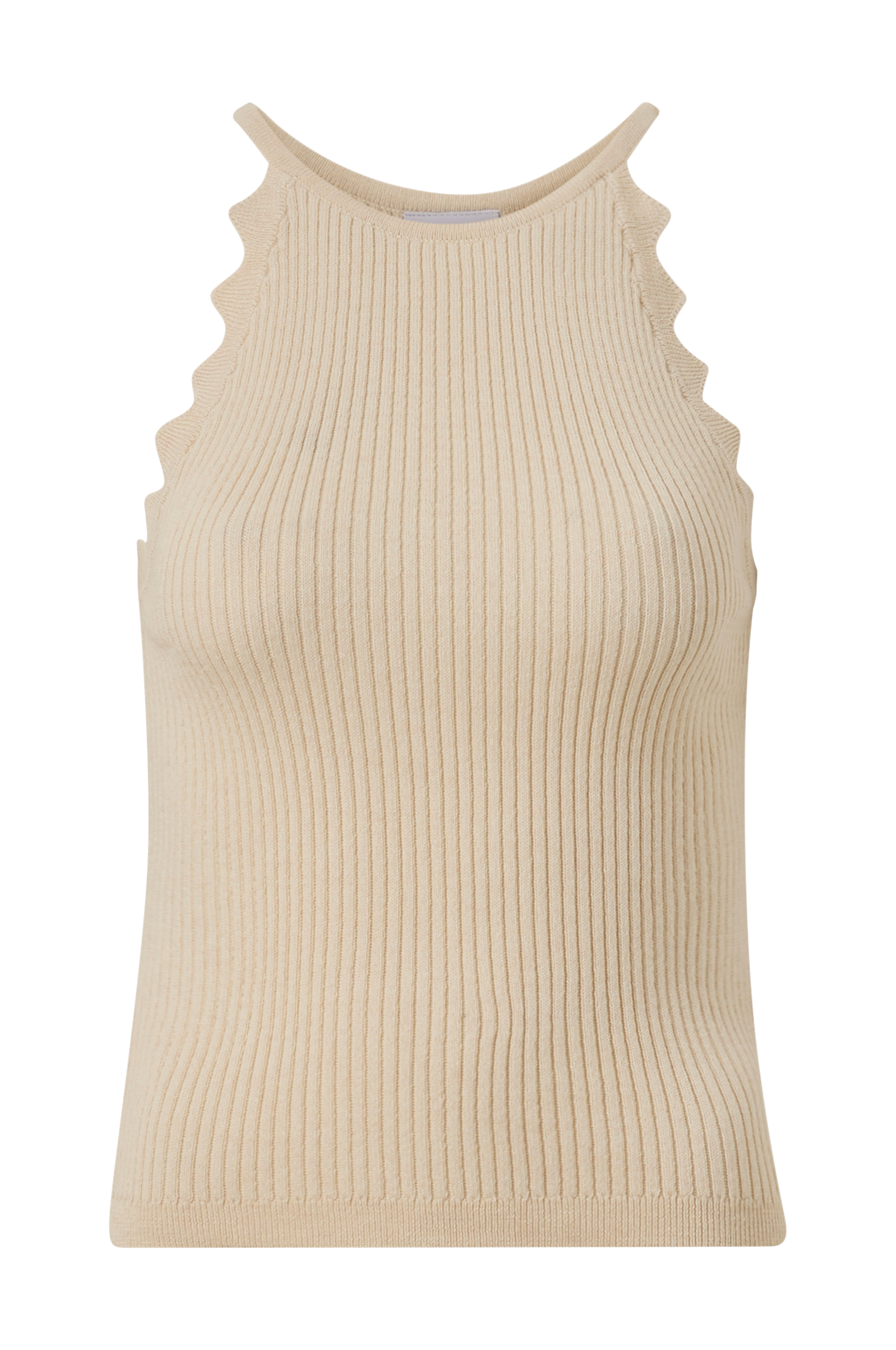 • Ärmlös design• Mjuk, ribbad kvalitet• Vågig kant• Produkten innehåller återvunnet material som har tagits tillvara för att minska mängden avfall, samtidigt som nya resurser inte har förbrukats.