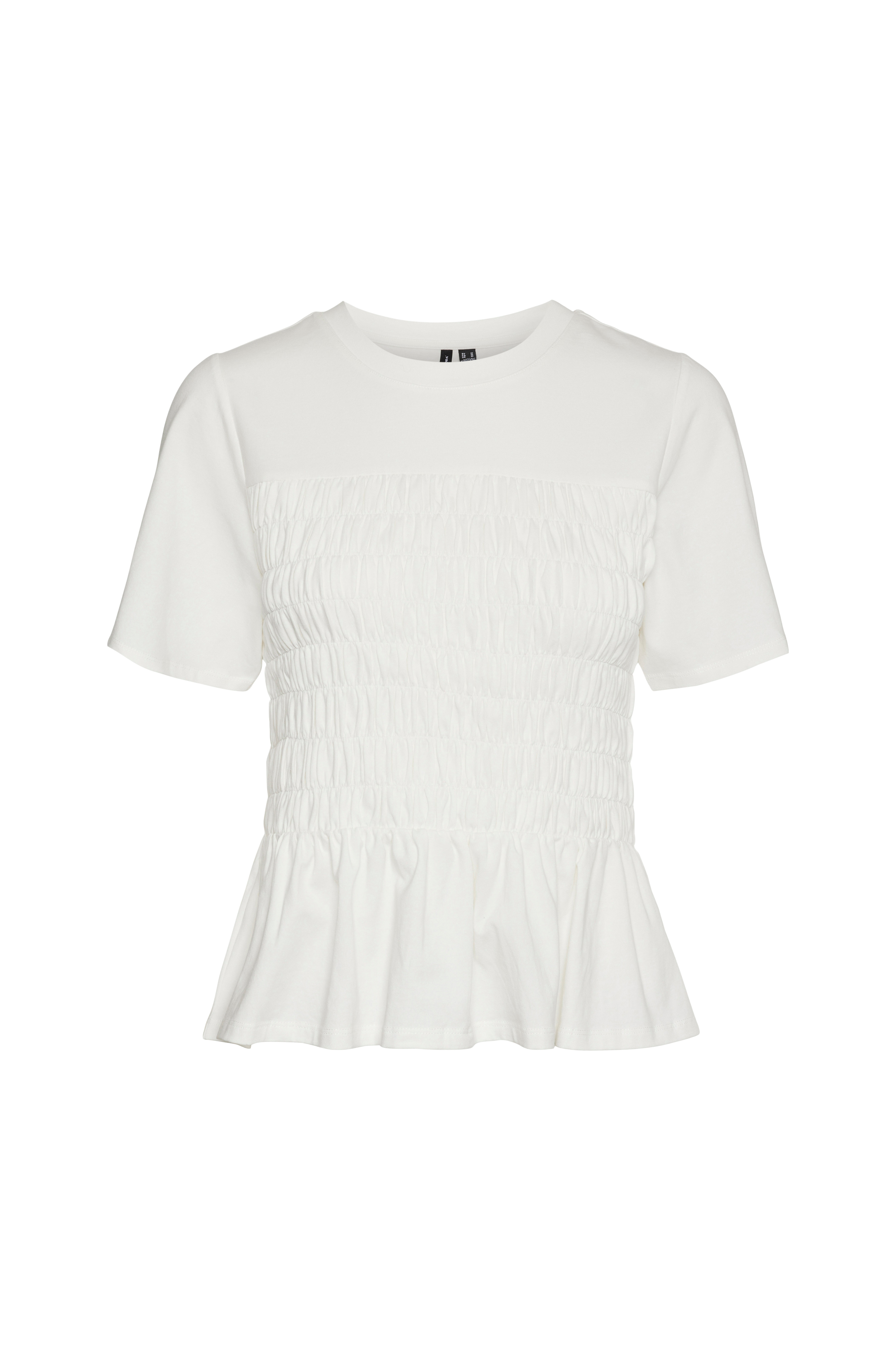 • Smockad topp i bomullstrikå• Korta ärmar