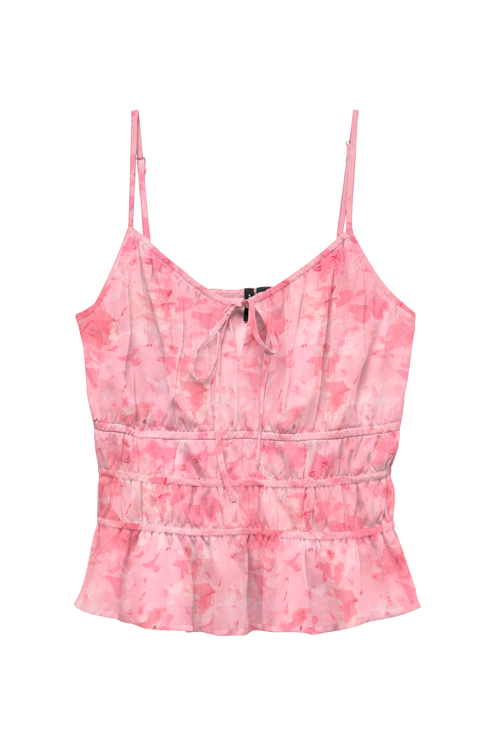 • Ärmlös topp i chiffong• Smala, justerbara axelband• Nyckelhålsöppning med knytdetalj vid halsringningen• Resår i midjan• Foder i trikå