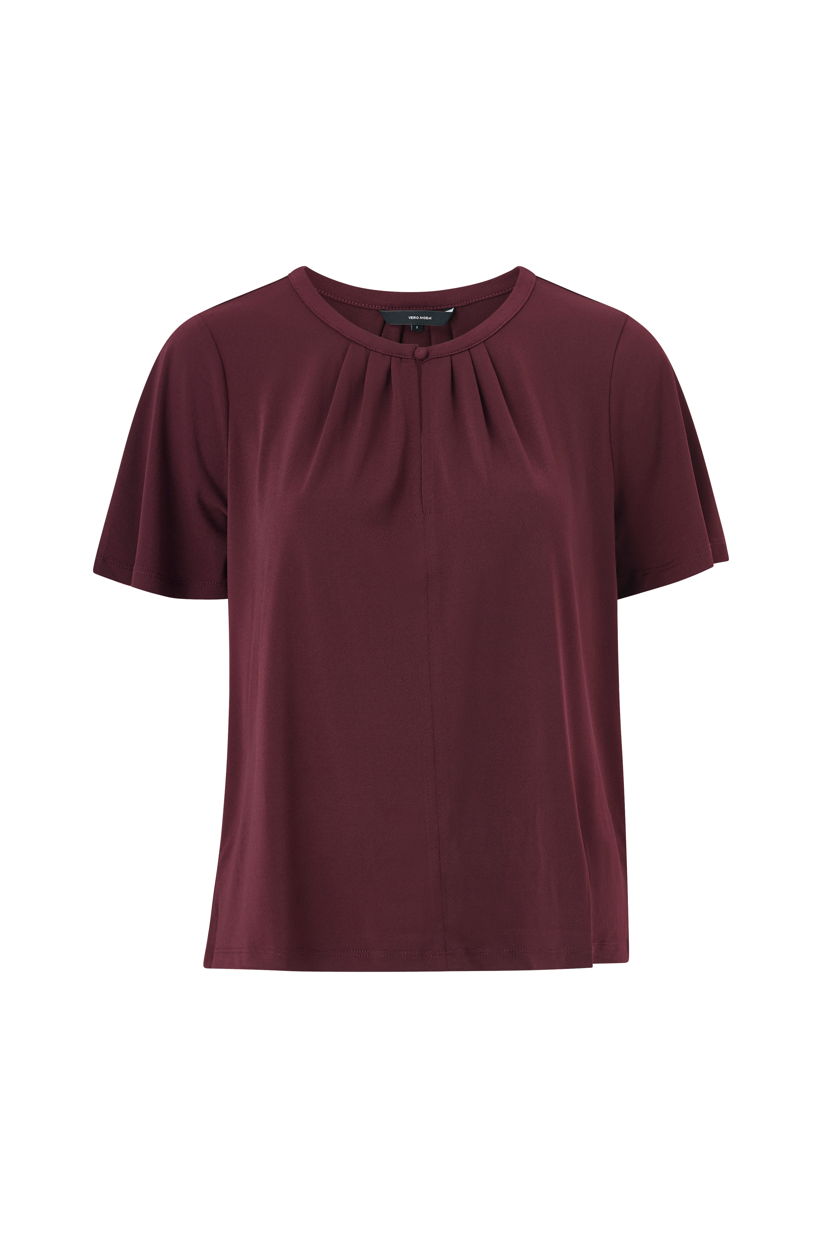 Topp vmMilla SS Button Top från Vero Moda i kortärmad modell med rund halsringning med lagda veck, sprund och klädd knapp fram. Lagda veck i nacken. Gjord i trikå med mycket stretch.