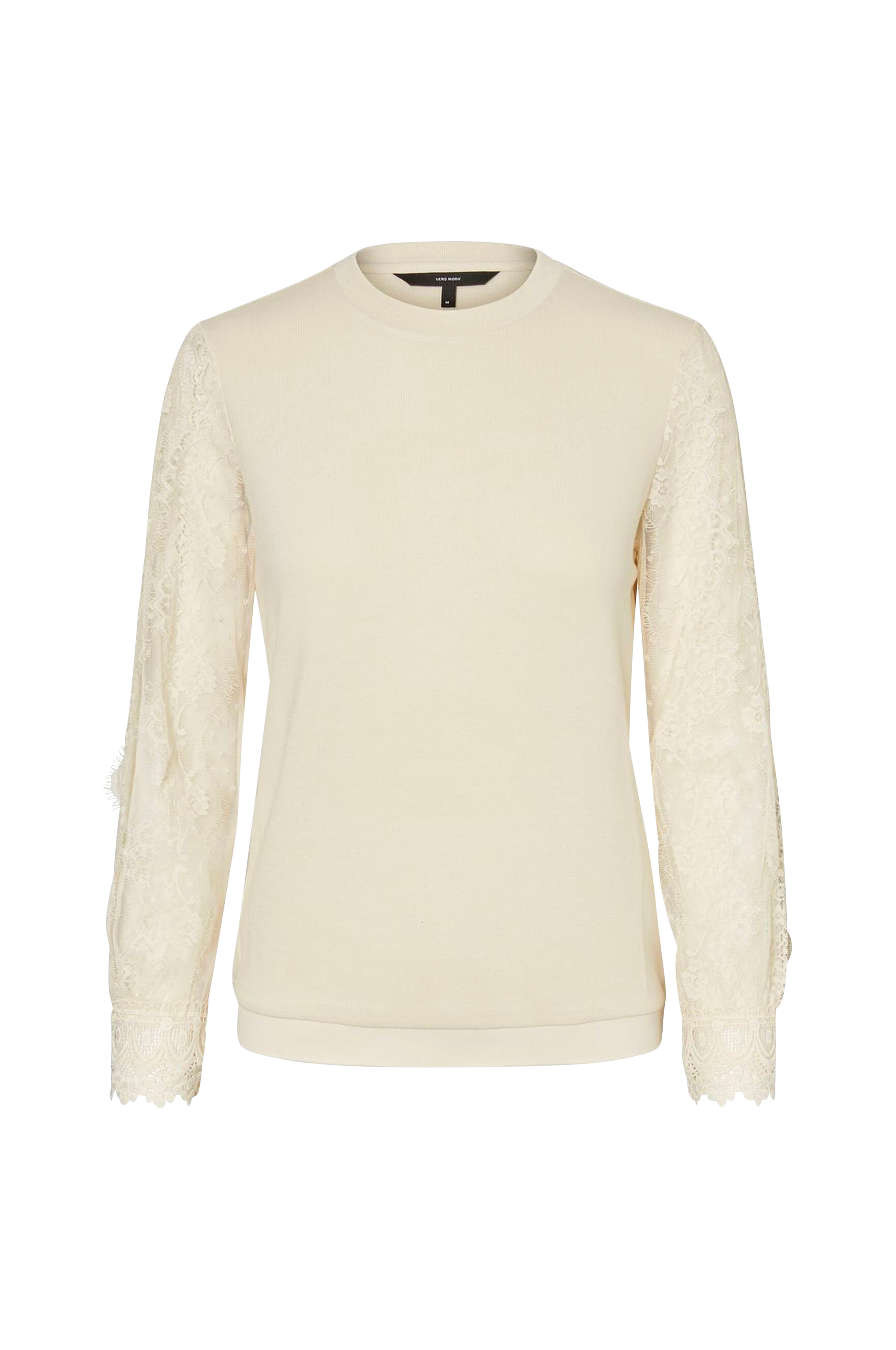 Topp vmMonal LS Top från Vero Moda i mjuk trikå med transparenta spetsärmar. Mudd nedtill.
