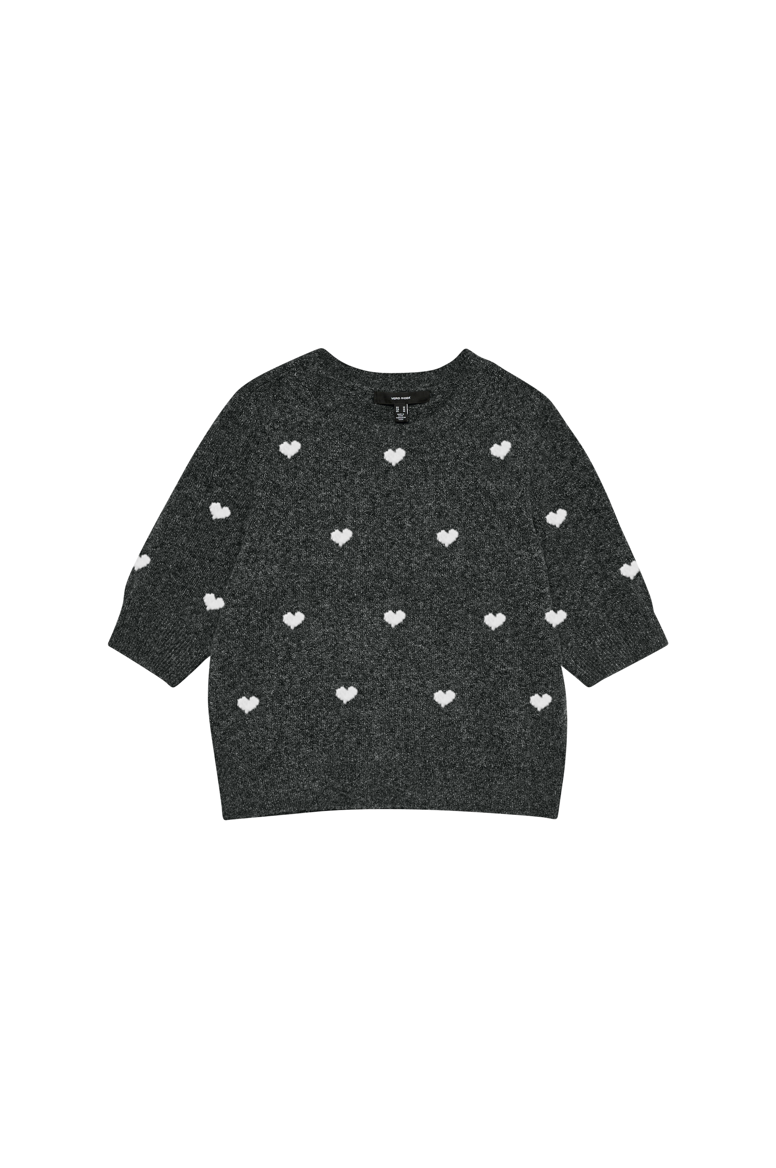 • Finstickad tröja med halvlånga ärmar och hjärtan runt om• Rund, ribbad halsringning• Ribbkanter i ärmsluten och i nederkanten