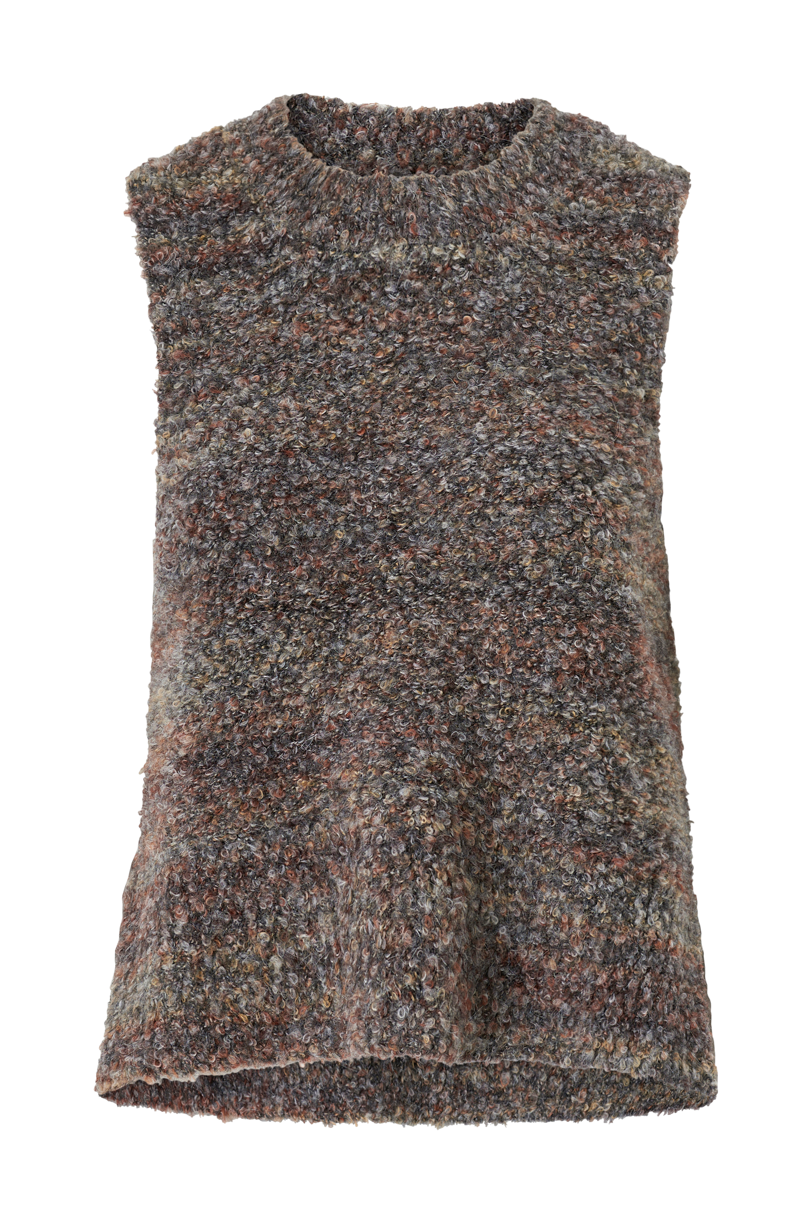 • Ärmlös design• Djup ärmöppning• Slitsar i sidorna• Mjuk, stickad kvalitet i bouclégarn• Produkten innehåller återvunnet material som har tagits tillvara för att minska mängden avfall, samtidigt som nya resurser inte har förbrukats.