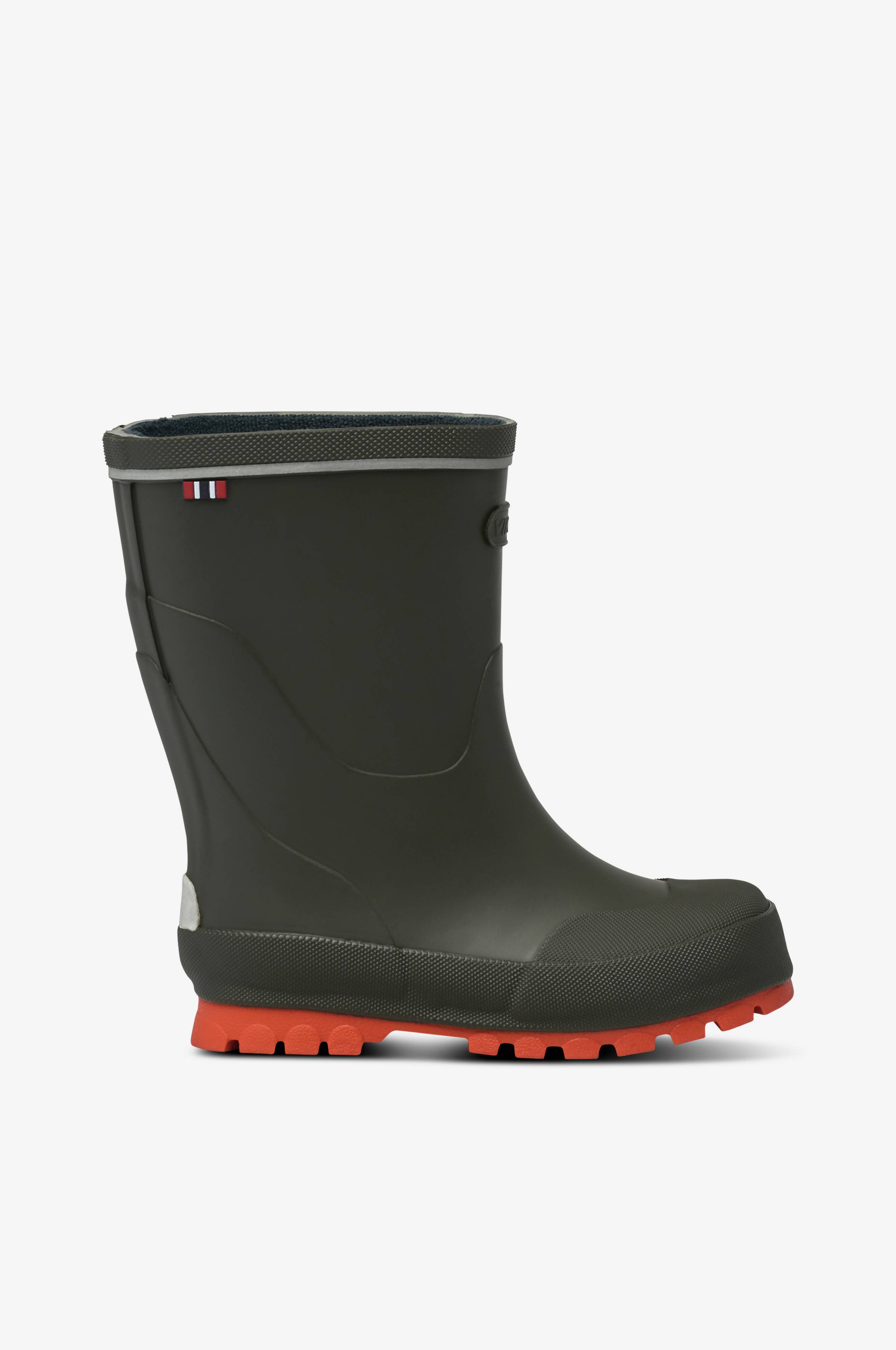 Gummistövel Jolly från Viking är en robust, färgglad gummistövel i mycket bra kvalitet av naturgummi, en gummiblandning som är anpassad till vårt nordiska landskap med fokus på slitstyrka och grepp. Naturgummi är mjukt och flexibelt både i varmt och kallt klimat. Den goda stötdämpningen i gummit kvarstår. Tålig modell som är extra förstärkt runt tån och runt sulkanten. Reflexdetalj på hälen. Vävd hälla bak på skaftet gör den enkel att dra på. Urtagbar, stoppad innersula. Stöveln är helfodrad och kan användas även utan innersulan. Bäst i test enligt testfakta.se (Vårens bästa barnstövlar, 26 mars 2018) .