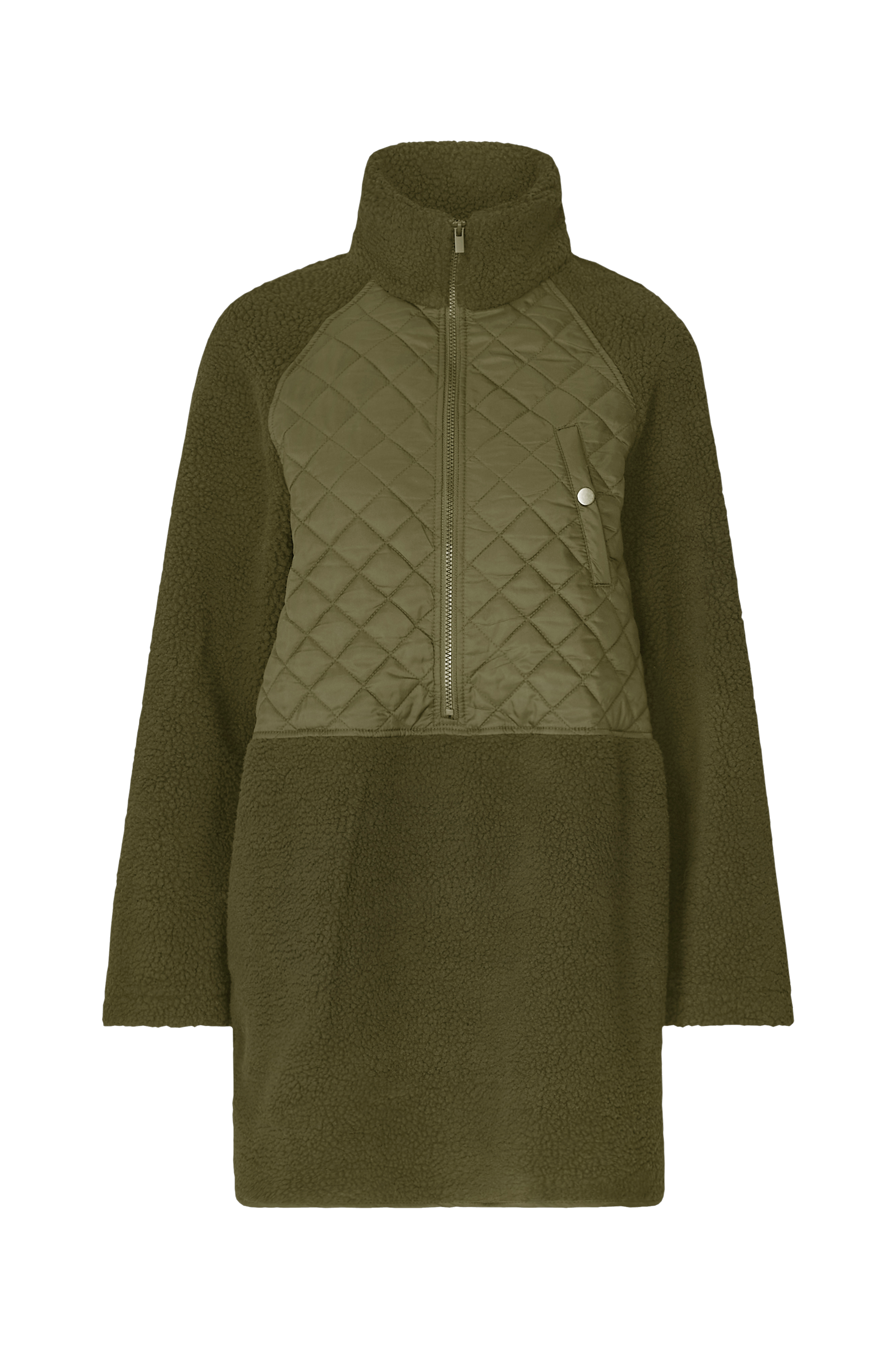 • Lång anorak i teddy• Vävt, quiltat parti upptill fram• Hög krage• Halvlång dragkedja• Fuskficka med tryckknapp upptill fram• Sprund nedtill i sidorna• Längd: 84 cm i storlek 36
