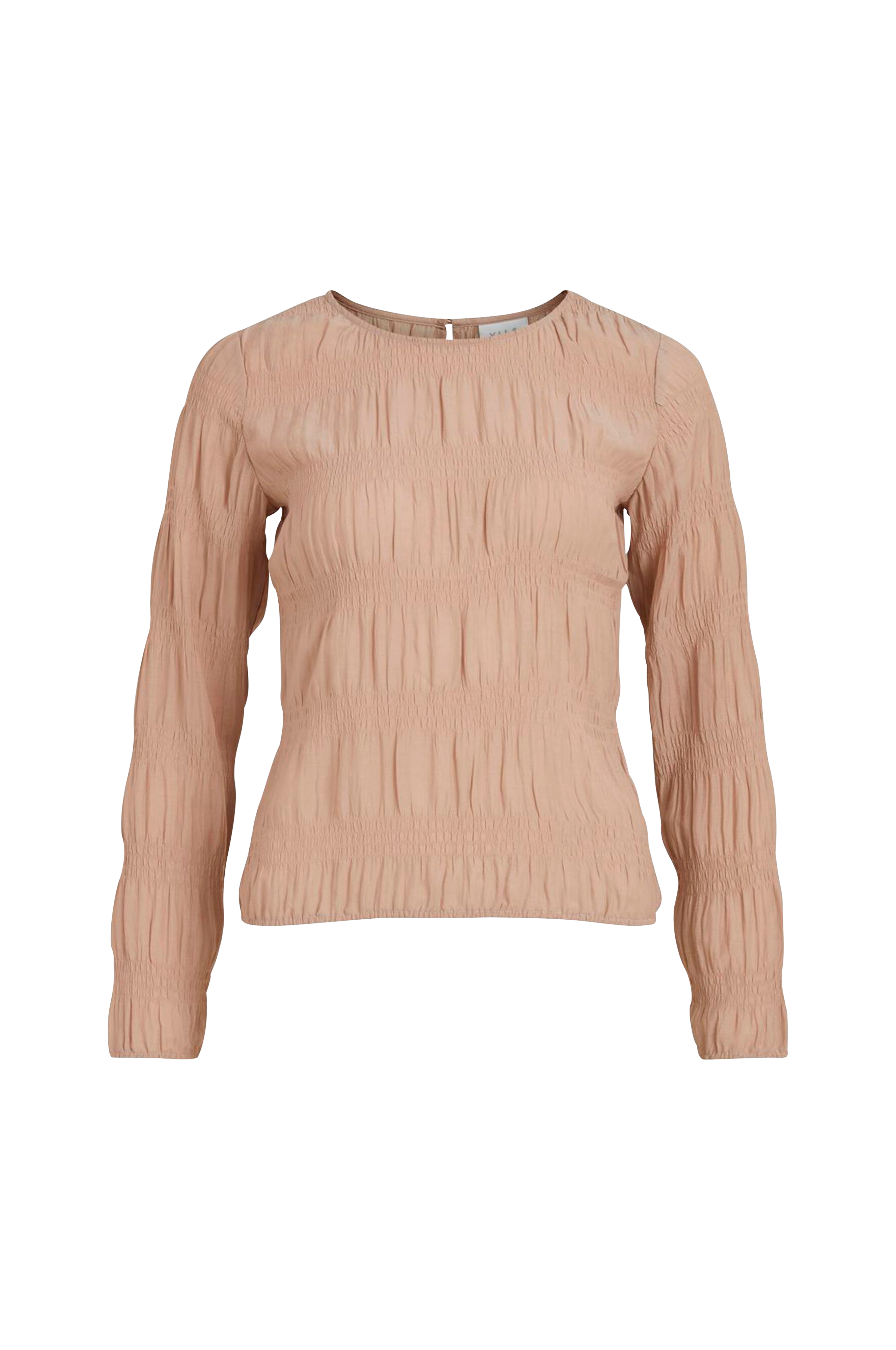 Blus i tunn, vävd kvalitet med smockpaneler som ger fint rynk runtom. Rund hals med sprund och knapp i nacken. Långa ärmar.