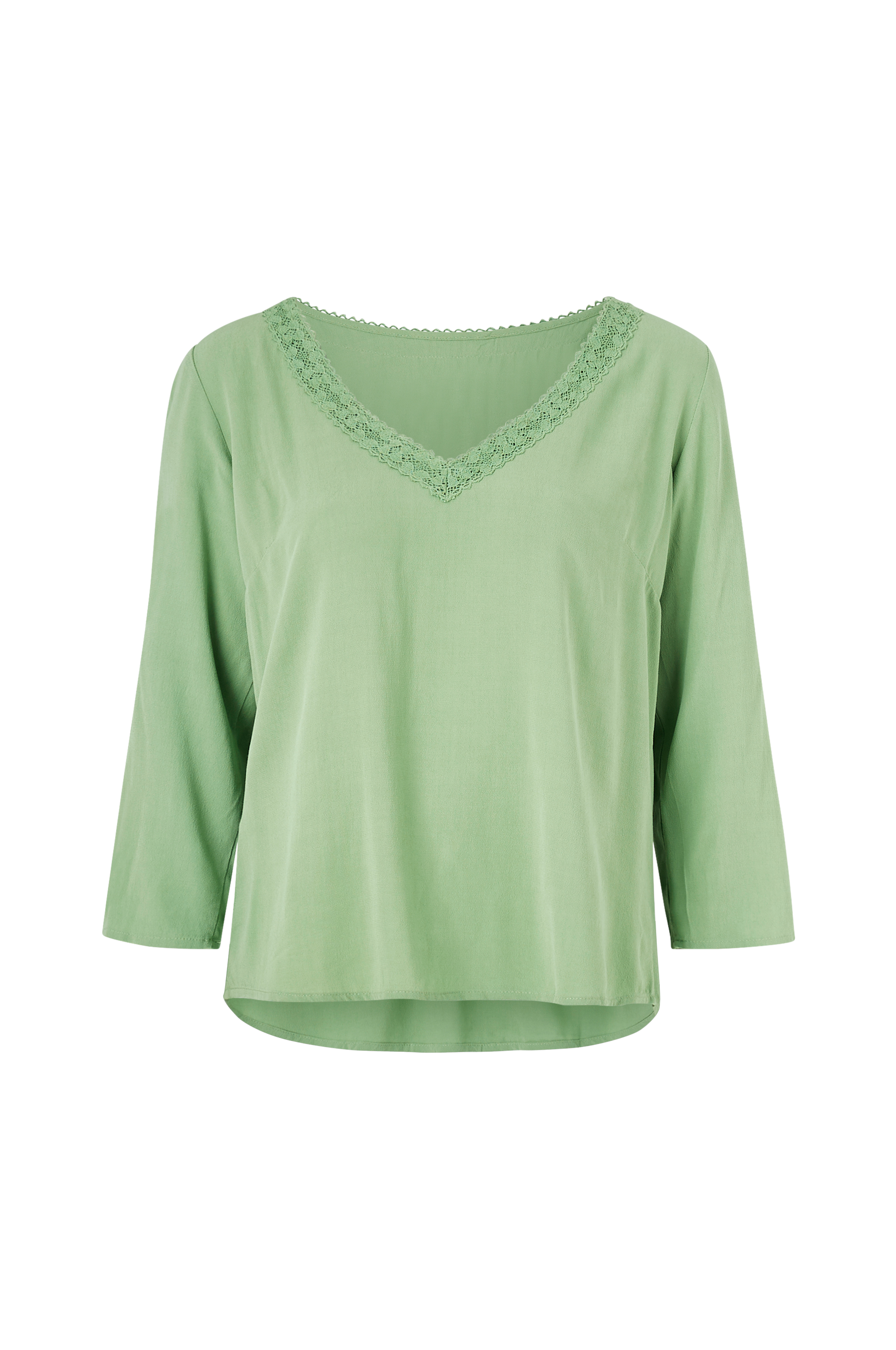 Blus viMoashly Lace 3/4 Top från Vila i v-ringad modell med virkad spets längs halsringningen. 3/4-långa ärmar. Gjord i vävd kvalitet med kräppad struktur.