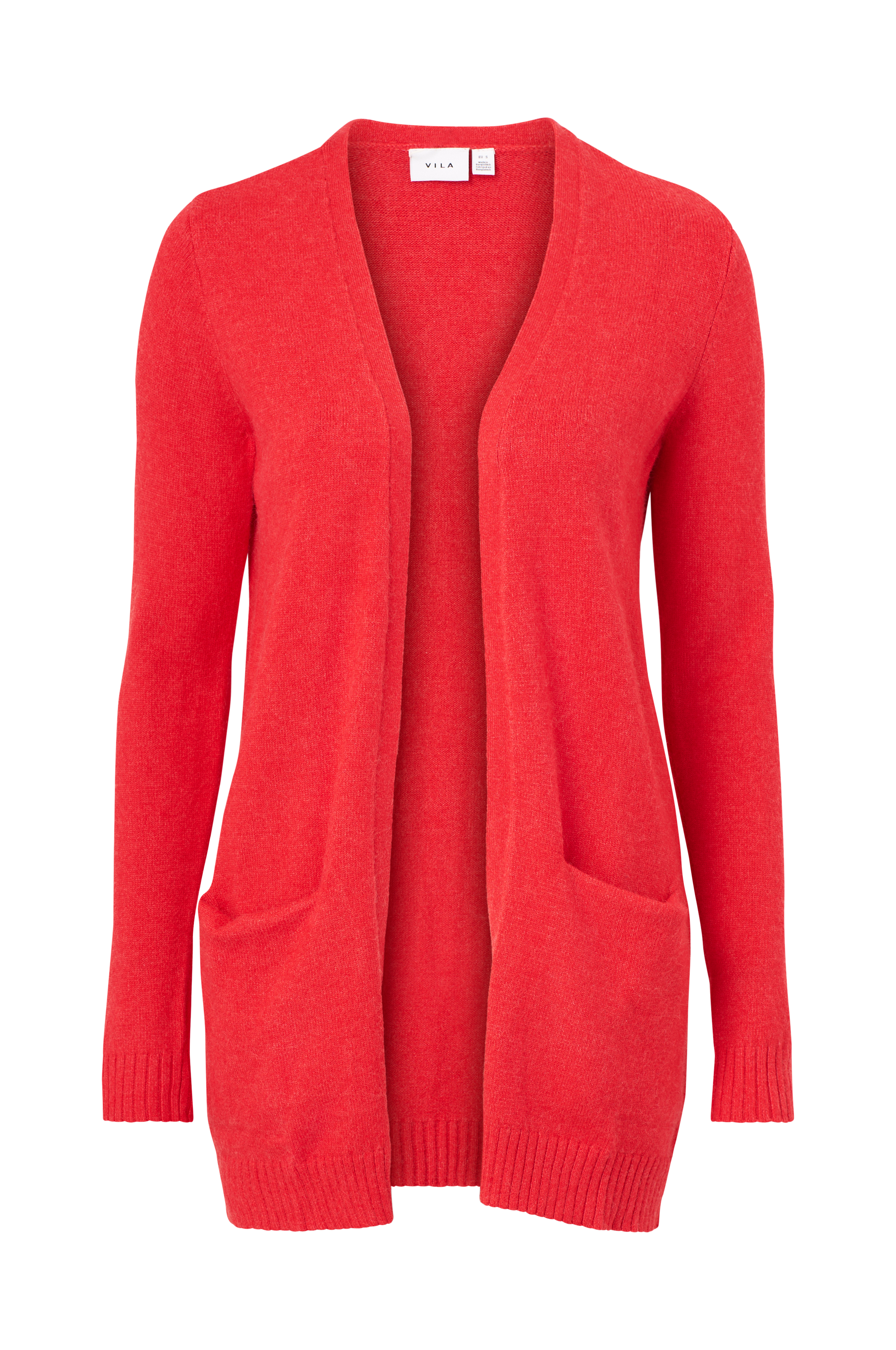 Cardigan viRil L/S Open Knit från Vila. Lång, snygg modell utan knäppning med stickad kant framtill. Två infällda fickor och grovribbad kant i ärmslut och nertill. Längd ca 84 cm i stl M.