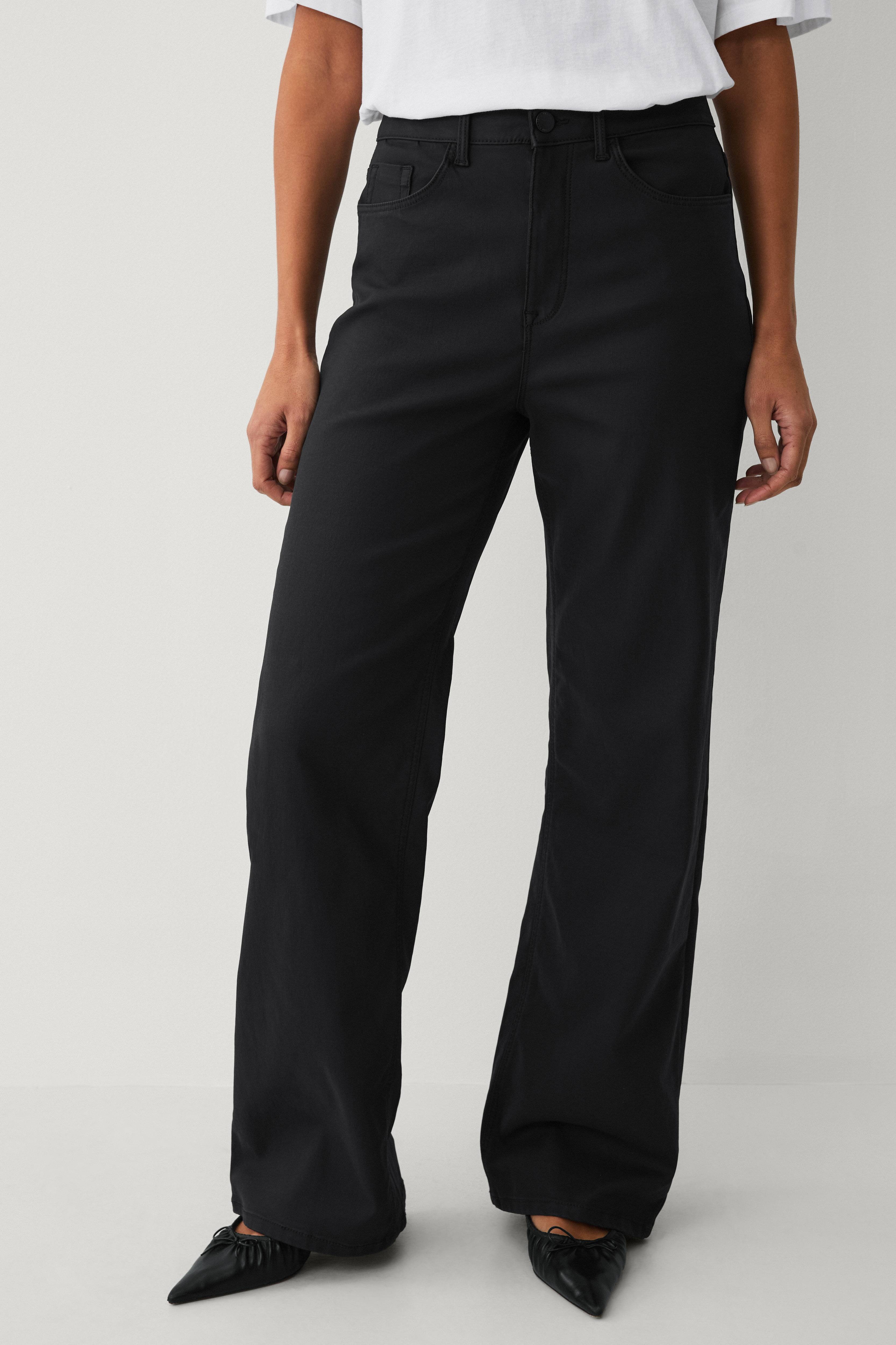 • Högmidjade jeans med coatad yta• Vida ben• Femficksmodell• Dragkedjegylf