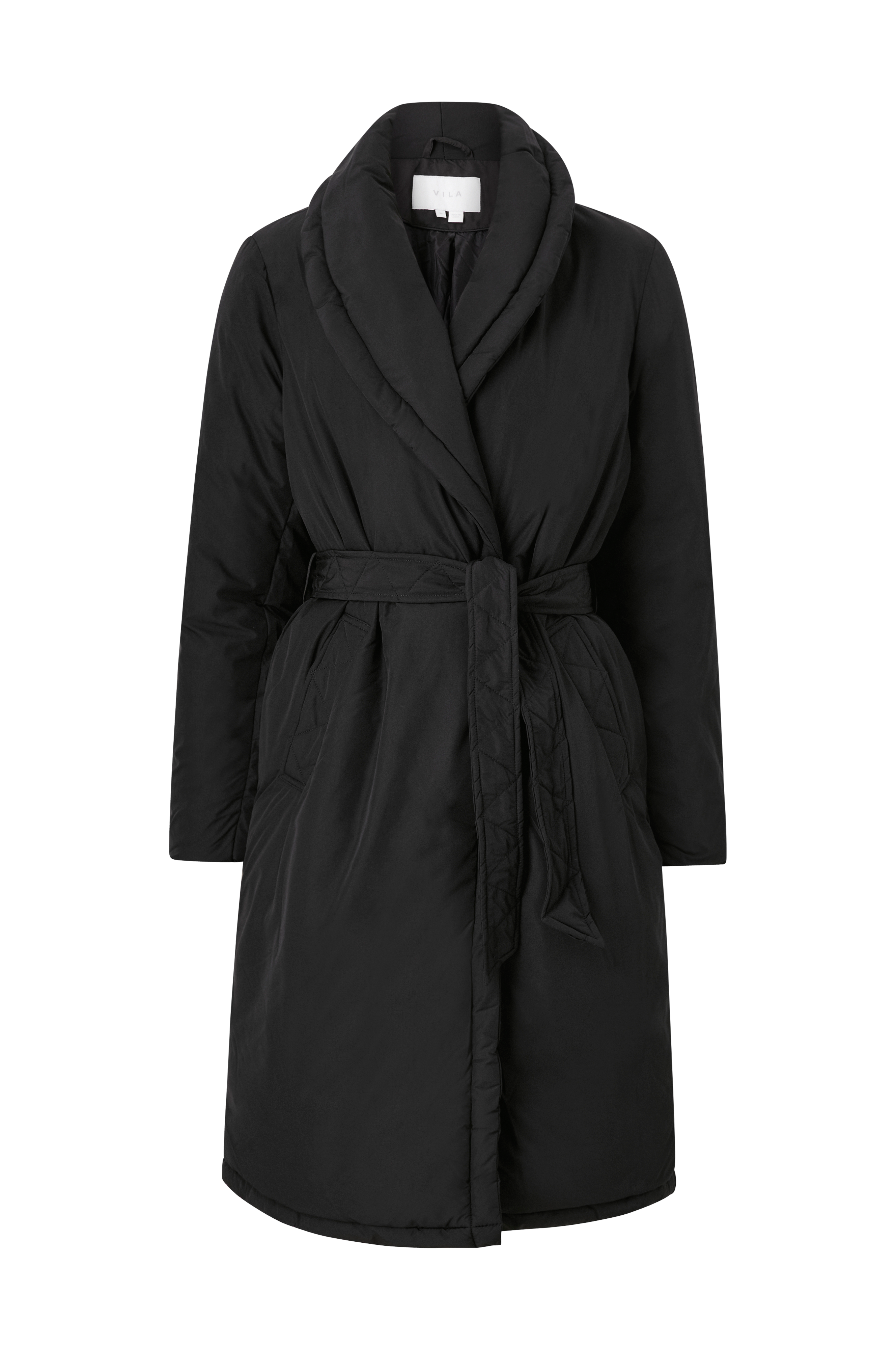 Vadderad kappa med lättviktig, tjock isolering med andasegenskaper. Stor sjalkrage och snedställd knäppning med dolda tryckknappar fram. Knytskärp i midjan ger den rätta passformen. Två öppna fickor fram. Längd ca 100 cm i stl 36.