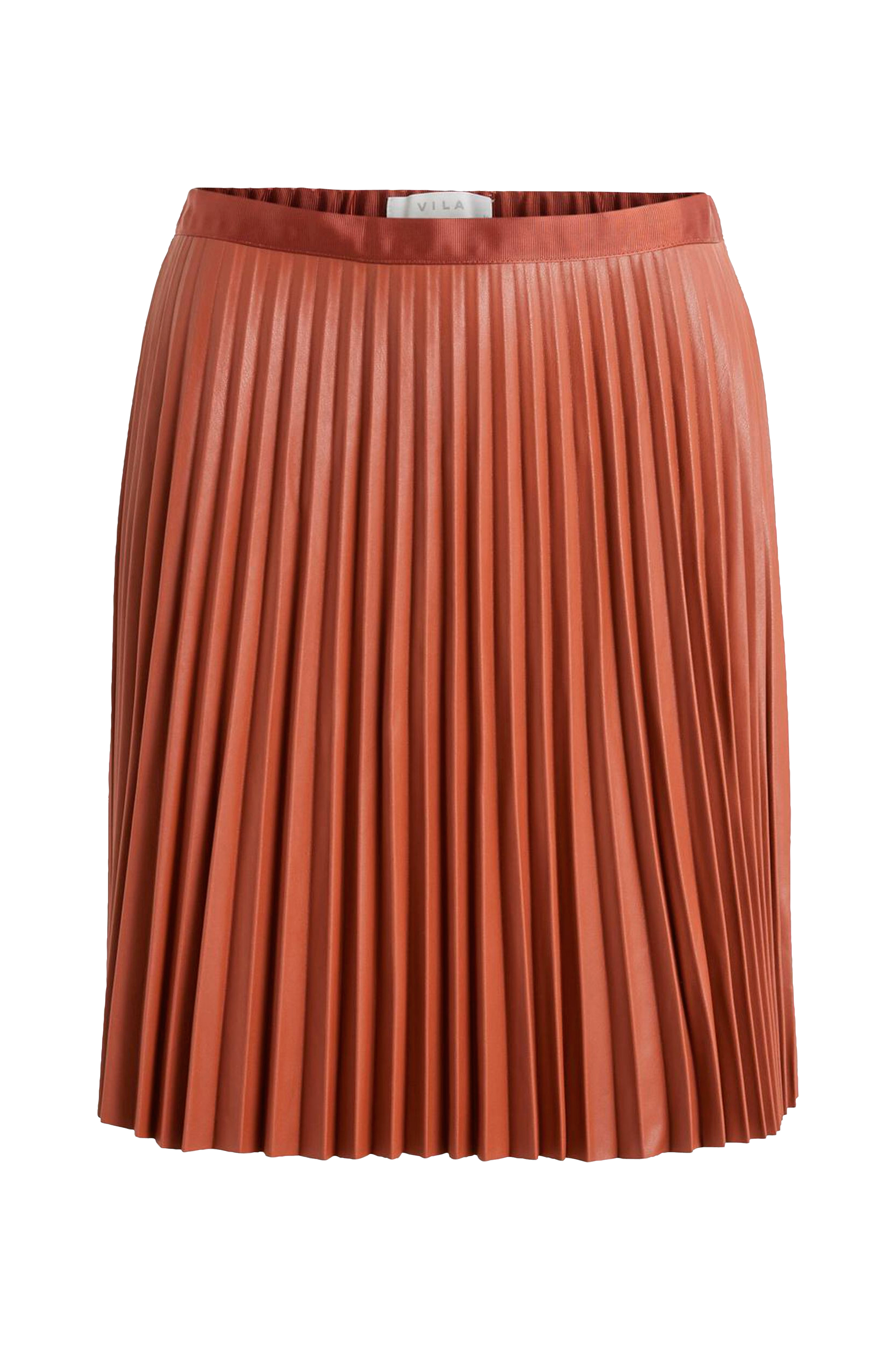 Kjol viAminna HW Pleated Short Coated Skirt från Vila i plisserad skinnimitation. Påsytt band i midjan och dold dragkedja i sidan. Ofållad nederkant. Längd ca 49 cm i stl 36.