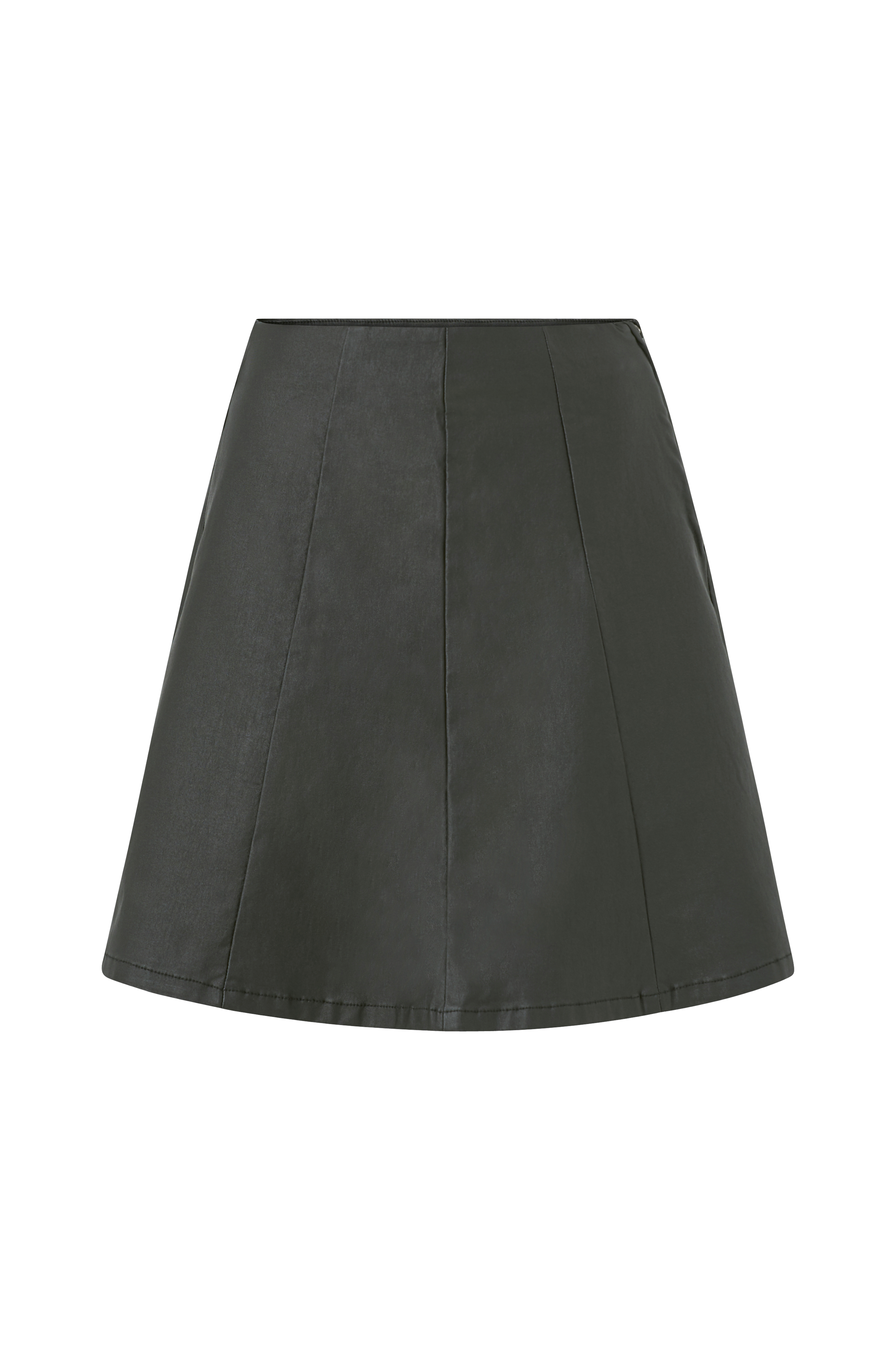 Kjol viCommit HW Short Coated Skirt från Vila i kort, utställd modell i stretchkvalitet med coatad yta. Dragkedja i ena sidan. Längd ca 45 cm i stl S.