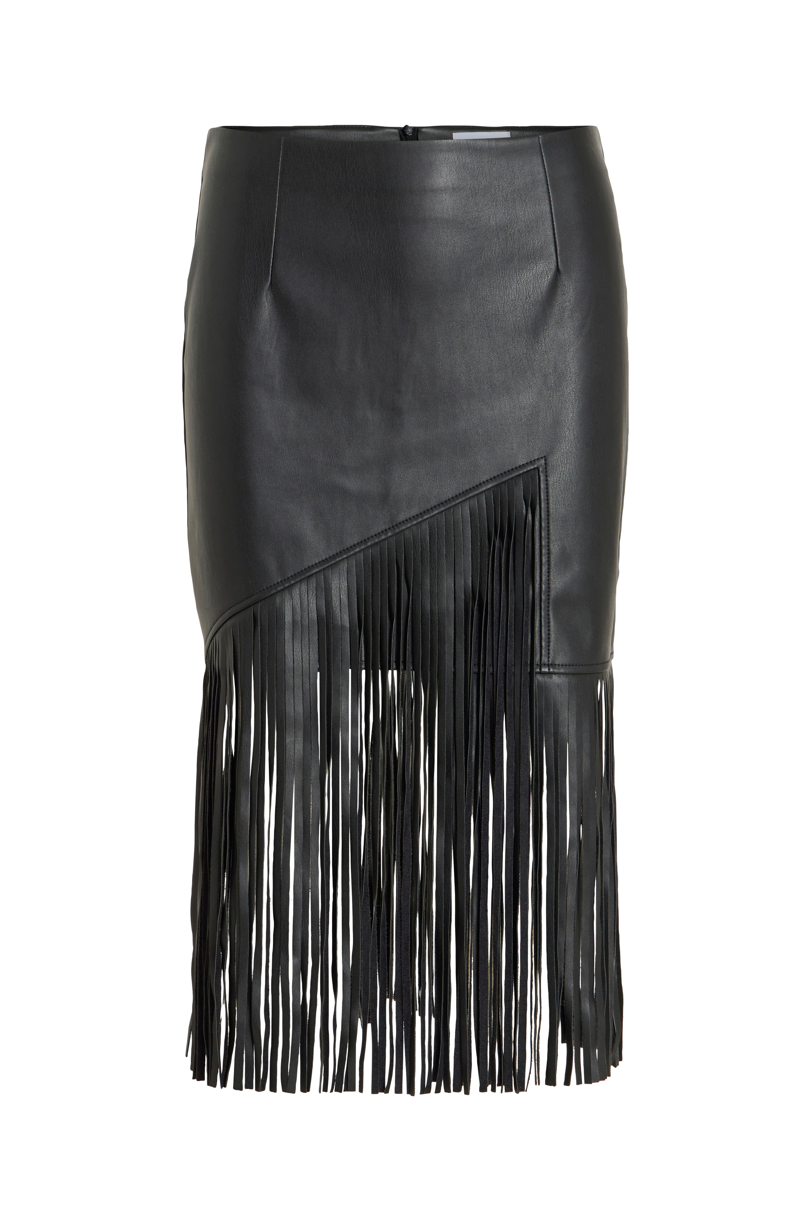 • Kjol i skinnimitation med fransar nedtill