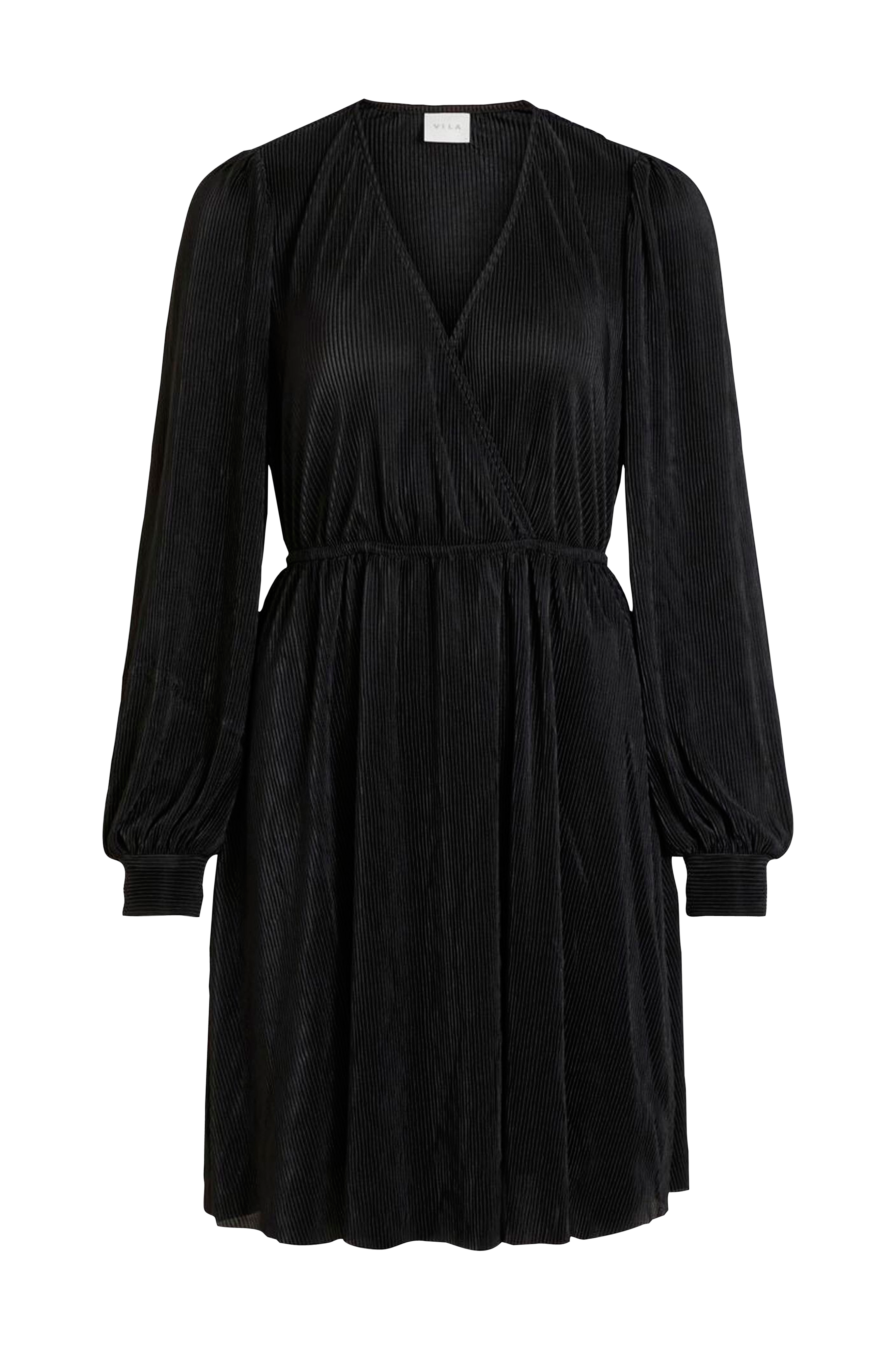 Klänning viBlamia L/S Wrap Plisse Dress från Vila i plisserad trikå med lyster. V-ringning i omlott fram, elastisk midja och utställd kjol. Långa, något vidare ärmar med rynkad axelsöm och mudd i ärmsluten. Längd ca 98 cm i stl S.