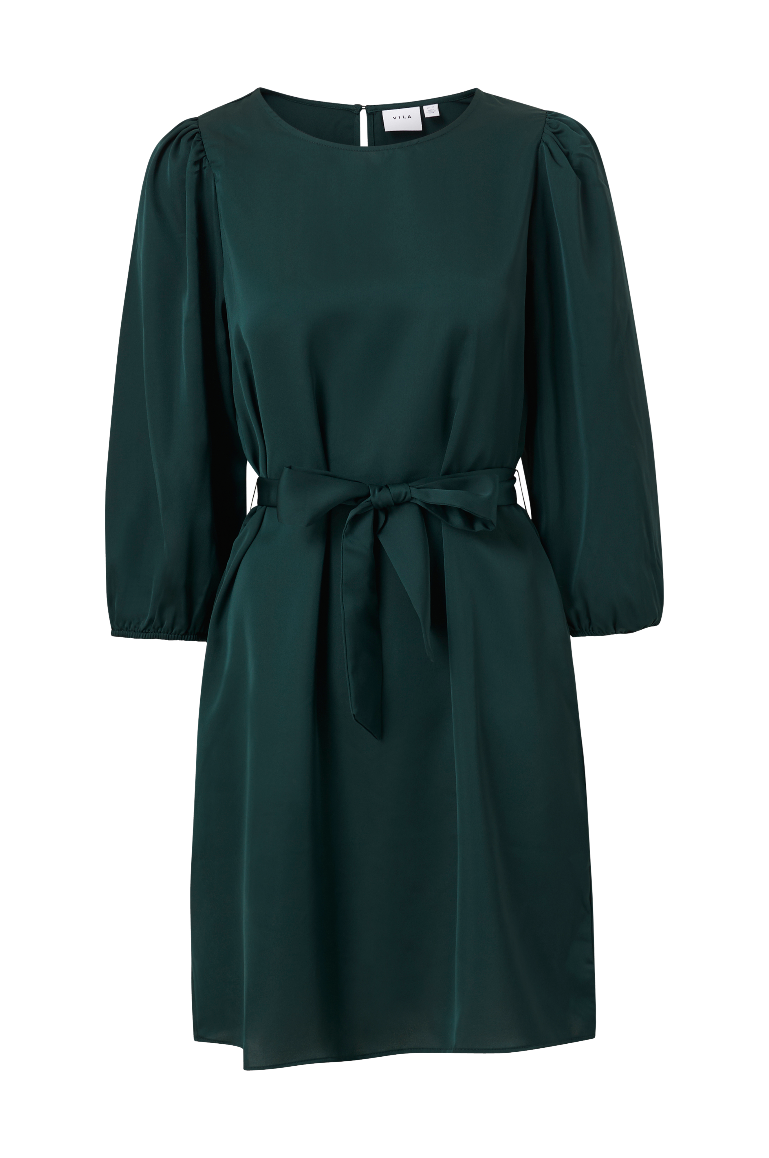 • Rak modell i satin • Halsringning med knapp i nacken • 3/4-lång puffärm med en resår i ärmsluten • Knytskärp i midjan • Längd: 93 cm i storlek 36 • Produkten innehåller återvunnet material som har tagits tillvara för att minska mängden avfall, samtidigt som nya resurser inte har förbrukats.