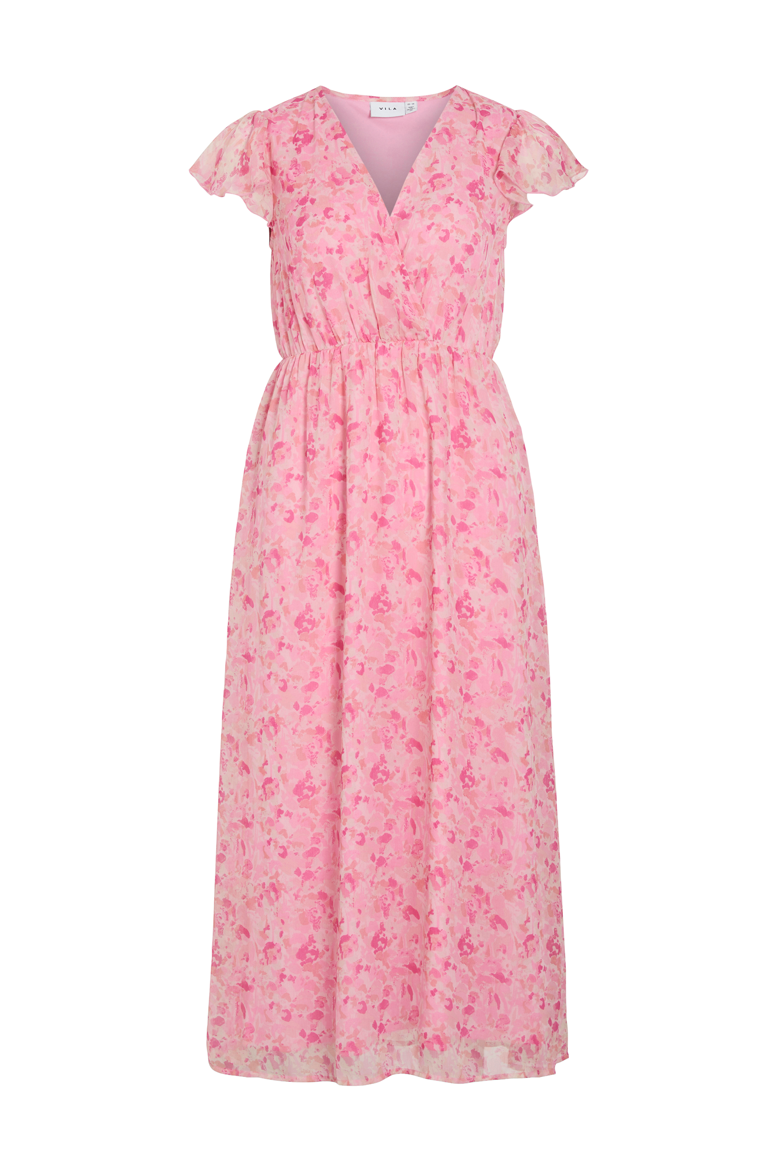 • Klänning i krinklad chiffong• Korta volangärmar• Omlottdesign• Elastisk midja• Trikåfoder• Längd: 129 cm i storlek 36