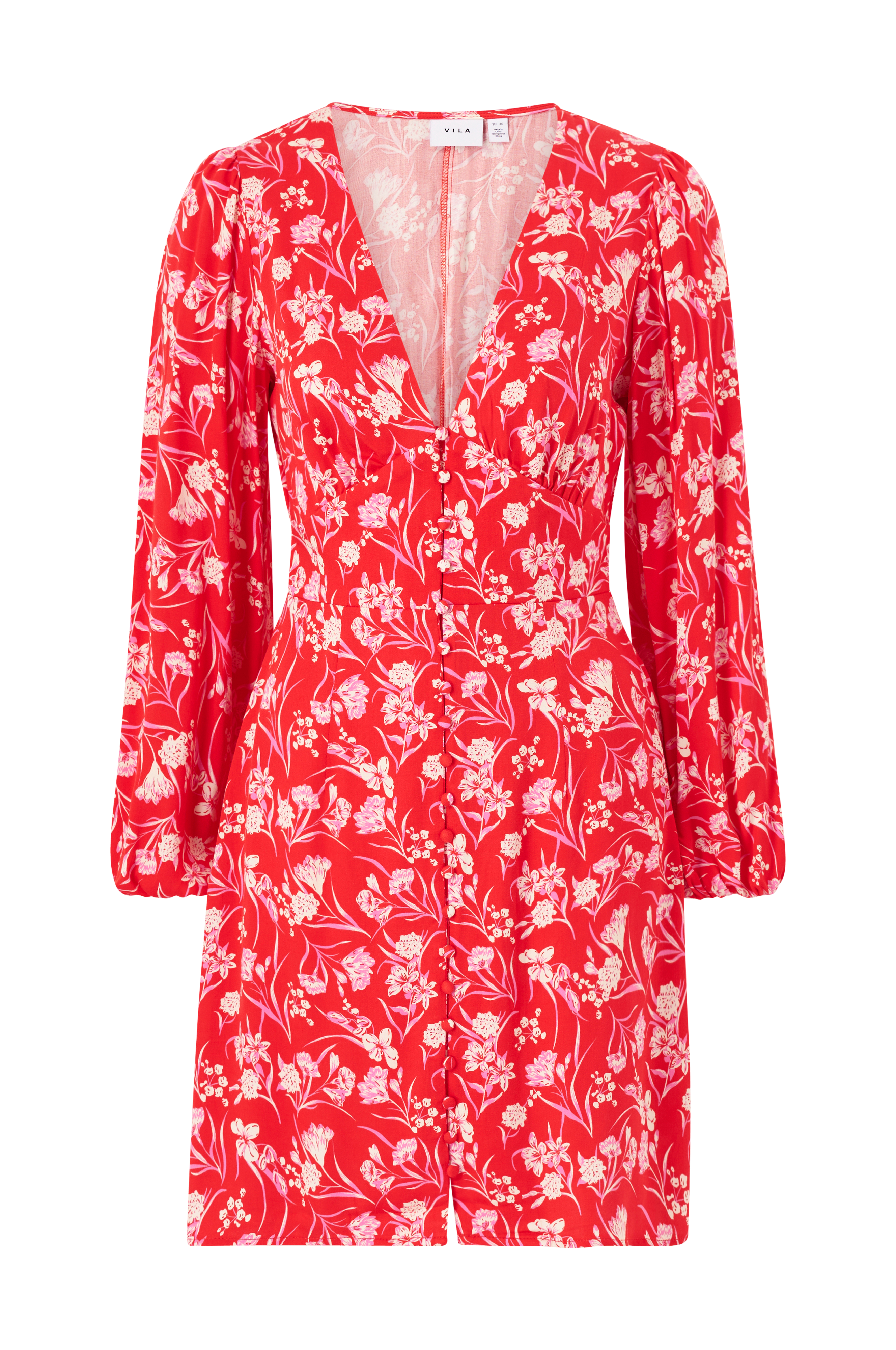• Kort klänning i viskos• V-ringning• Knappar fram• Ballongärmar med elastiska ärmslut• Längd: 89 cm i storlek 36