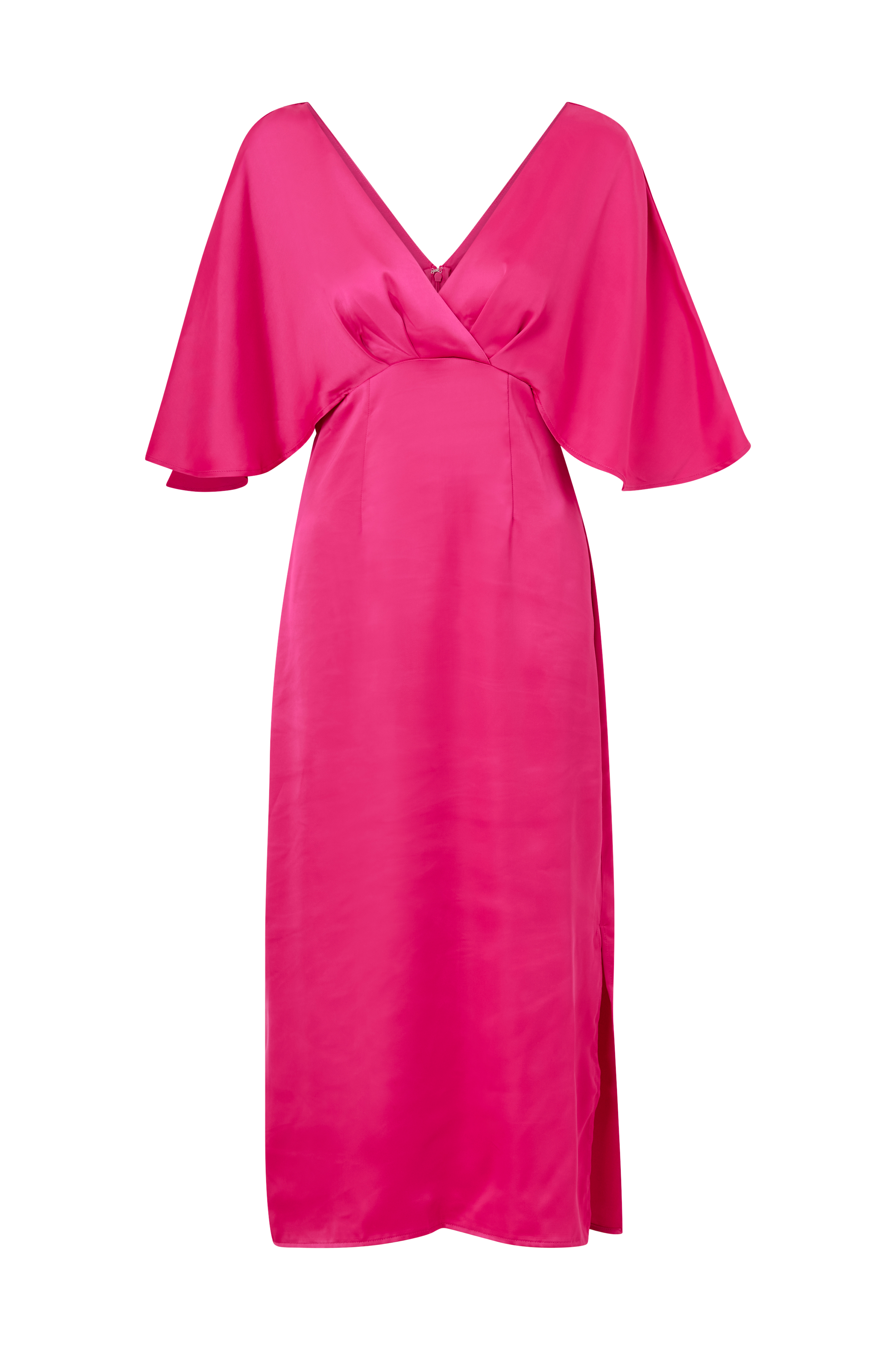 • Klänning i satin• V-ringning fram och bak• Omlott med veck fram• Dold dragkedja i ryggen• Vida fjärilsärmar• Slits i ena sidan• Längd: 123 cm i storlek 36