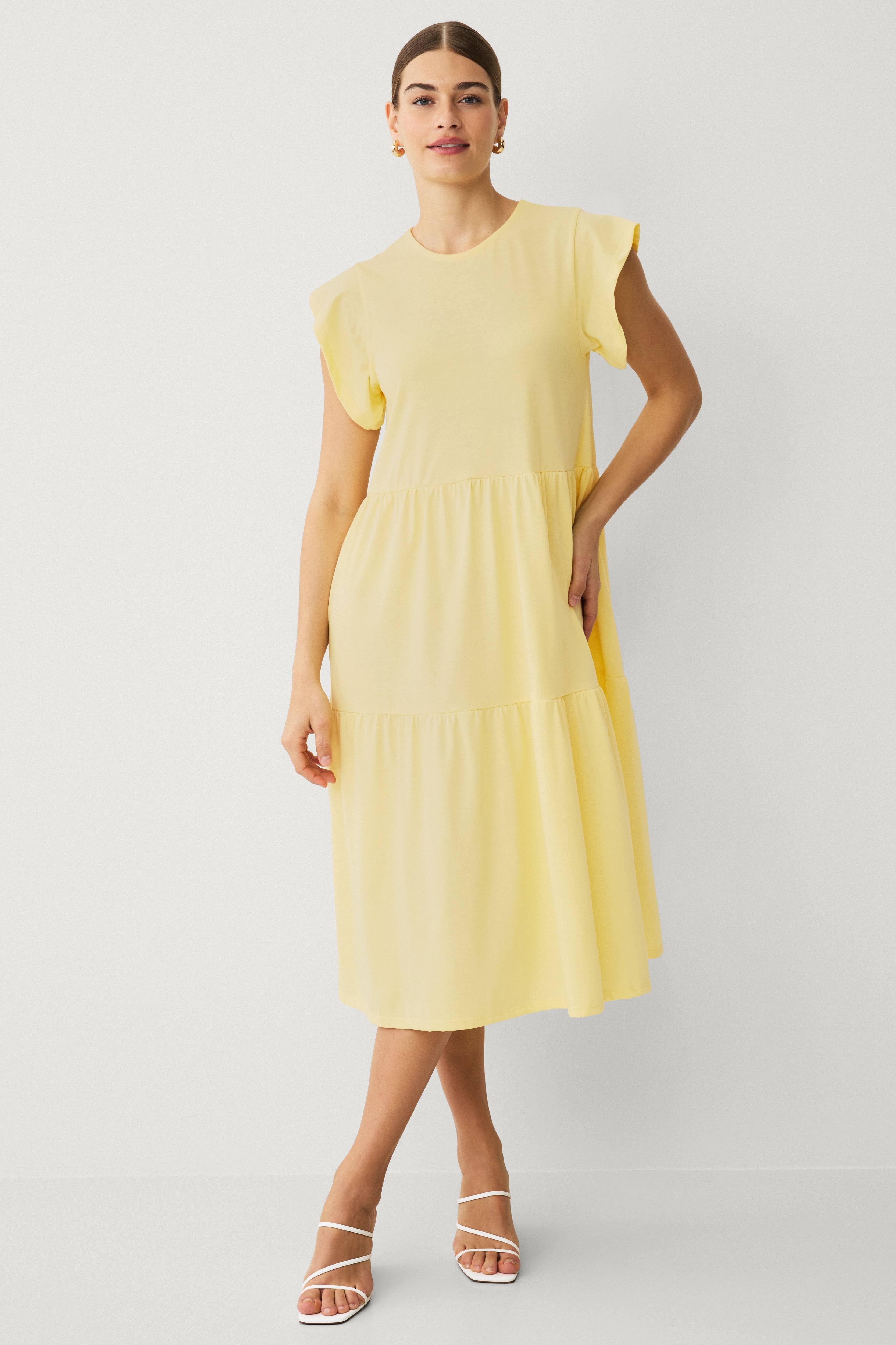 • Midiklänning i bomullstrikå