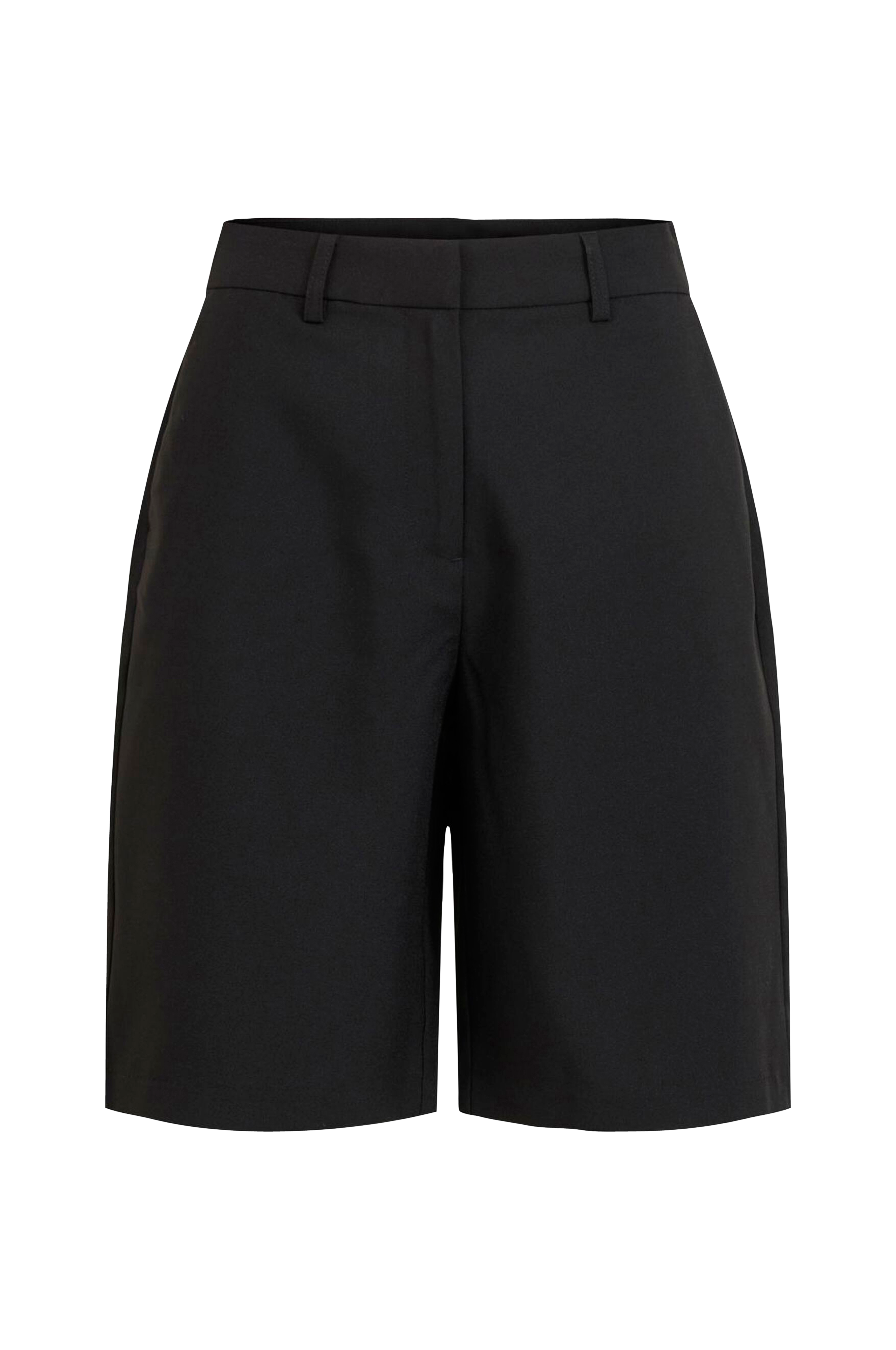 Cityshorts med hög midja och linning med hällor och dold hake fram. Raka ben och två snedskurna framfickor samt två infällda fuskfickor bak. Beninnerlängd ca 25 cm i stl 36.