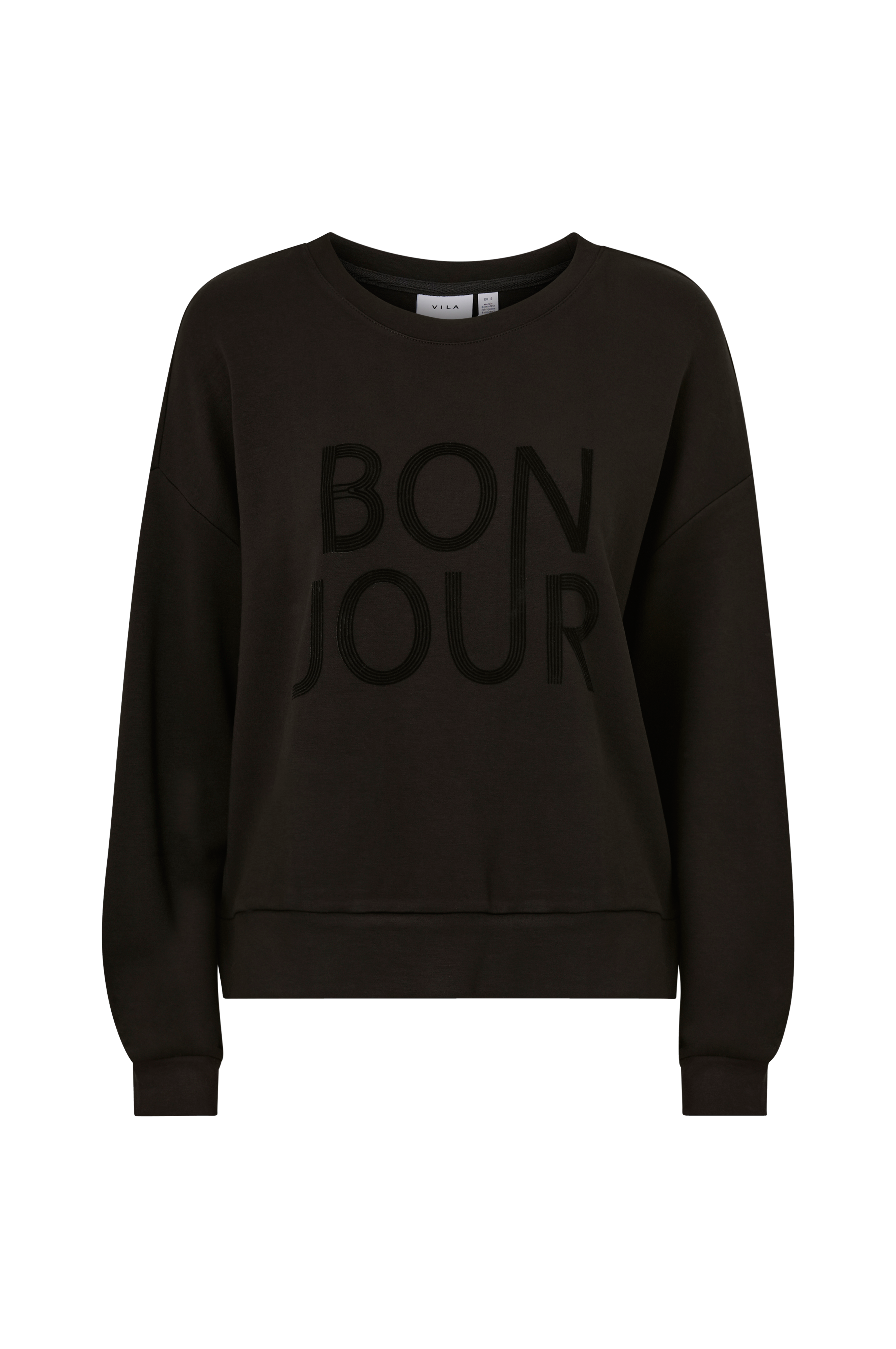 • Ledig modell med sammetstryck fram• Rund, ribbad hals• Mudd i ärmsluten och nedtill